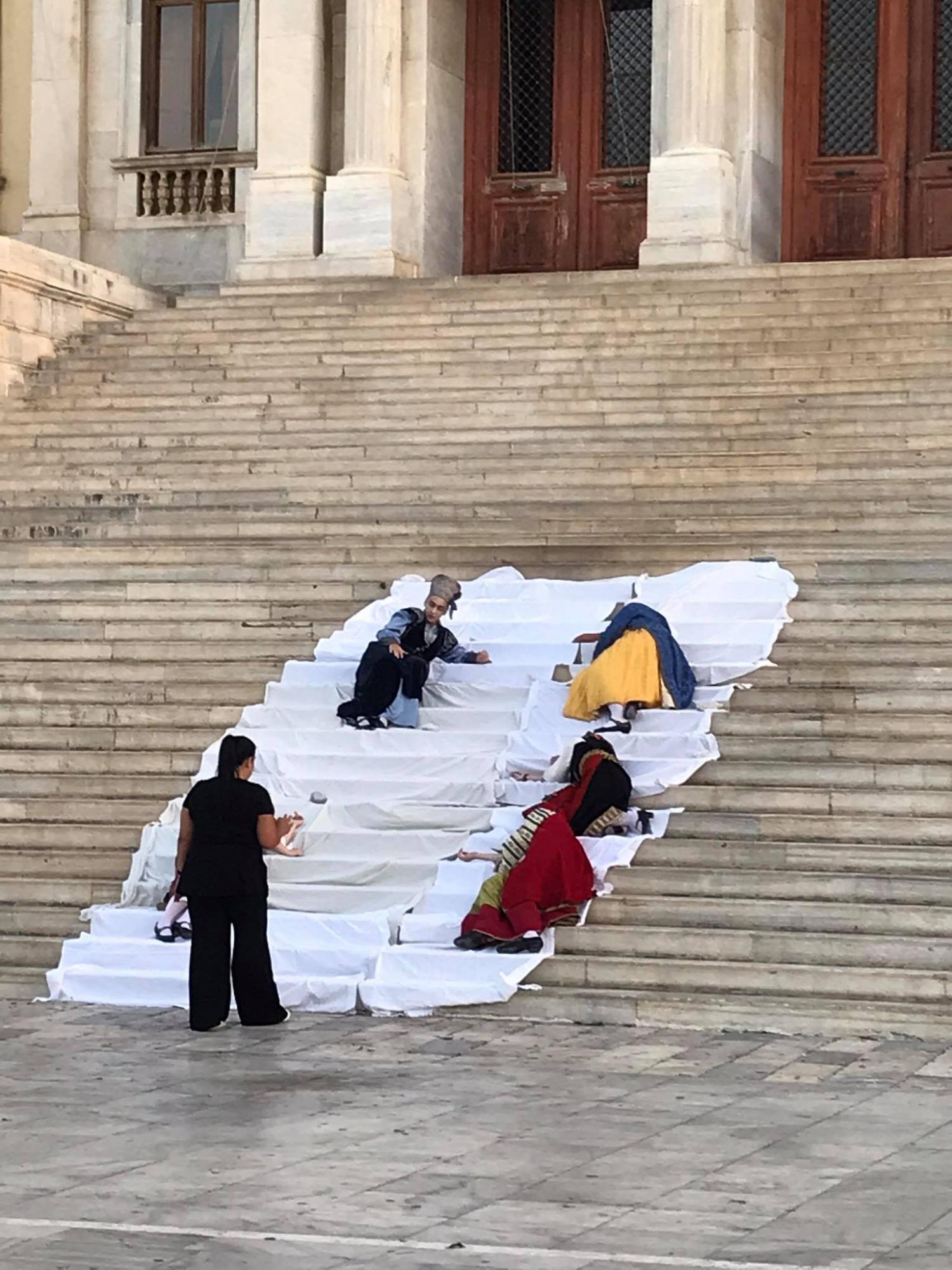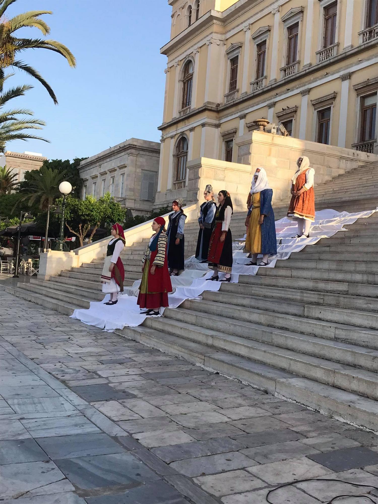 Το Δημόσιο Ινστιτούτο Επαγγελματικής Κατάρτισης Σύρου ανταποκρίθηκε στην παραπάνω πρόσκληση και συμμετέχει στον διαγωνισμό με ένα δρώμενο που μαγνητοσκοπήθηκε το περασμένο σαββατοκύριακο στην πλατεία Μιαούλη και ειδικότερα, στα σκαλιά του εμβληματικού Δημαρχείου της Ερμούπολης. Μέσα από το βίντεο που θα σταλεί στο Υπουργείο και θα αναρτηθεί πιθανόν το προσεχές φθινόπωρο θα δούμε μεγάλες γυναίκες μορφές του 1821 όπως η Μαντώ Μαυρογένους που τιμήθηκε με τον βαθμό της αντιστρατήγου για τη συνολική προσφορά της στον Αγώνα, η Λασκαρίνα “Μπουμπουλίνα” Πινότση, οι Σουλιώτισσες Δέσπω και Μόσχω Τζαβέλλα, καθώς και η Αλεφαντώ, η Μεσολογγίτισσα.