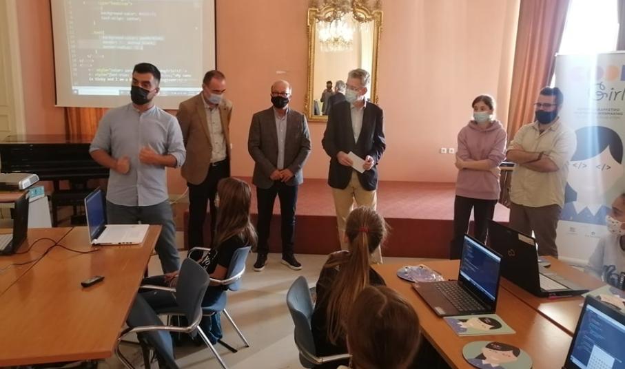 Χαιρετισμό στα Συριανά «CodeGirls» που το περασμένο σαββατοκύριακο μυήθηκαν στα μυστικά των νέων τεχνολογιών, υπό την καθοδήγηση έμπειρων εισηγητριών, απηύθυναν ο πρέσβης των Η.Π.Α. στην Ελλάδα, Τζέφρι Πάιατ και ο Δήμαρχος Σύρου – Ερμούπολης, Νίκος Λειβαδάρας.