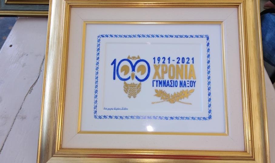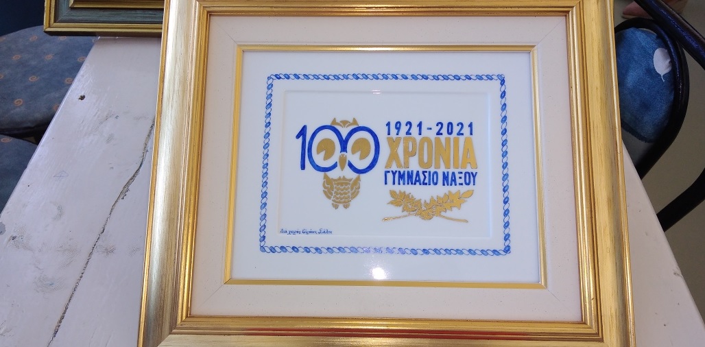 Όλοι οι μαθητές είχαν την ευκαιρία να θαυμάσουν μία πλακέτα πλακέτα (Limoges) με κεντρικό θέμα τον εορτασμό των 100 χρόνων ζωής του 1ου Γυμνασίου Νάξου με ανάγλυφα στοιχεία κι έναν πίνακα ζωγραφικής, διαστάσεων 65 Χ 75 εκατοστών, που φιλοτεχνήθηκε με την τεχνική της ελαιογραφίας σε καμβά και αναπαριστά την Χώρα όπως ακριβώς φαίνεται από το λιμάνι.