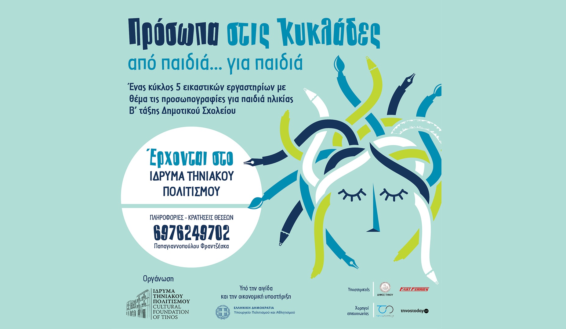 *Το πρόγραμμα Πρόσωπα στις Κυκλάδες από παιδιά για παιδιά είναι ένα έργο του Ιδρύματος Τηνιακού πολιτισμού σε συνεργασία με την Παπαγιαννοπούλου Φραντζέσκα, υπό την αιγίδα και με την οικονομική υποστήριξη του Υπουργείου Πολιτισμού και ΑΘλητισμού. Υποστηρικτές του έργου είναι ο Δήμος Τήνου και η ακτοπλοϊκή εταιρεία FAST FERRIES.