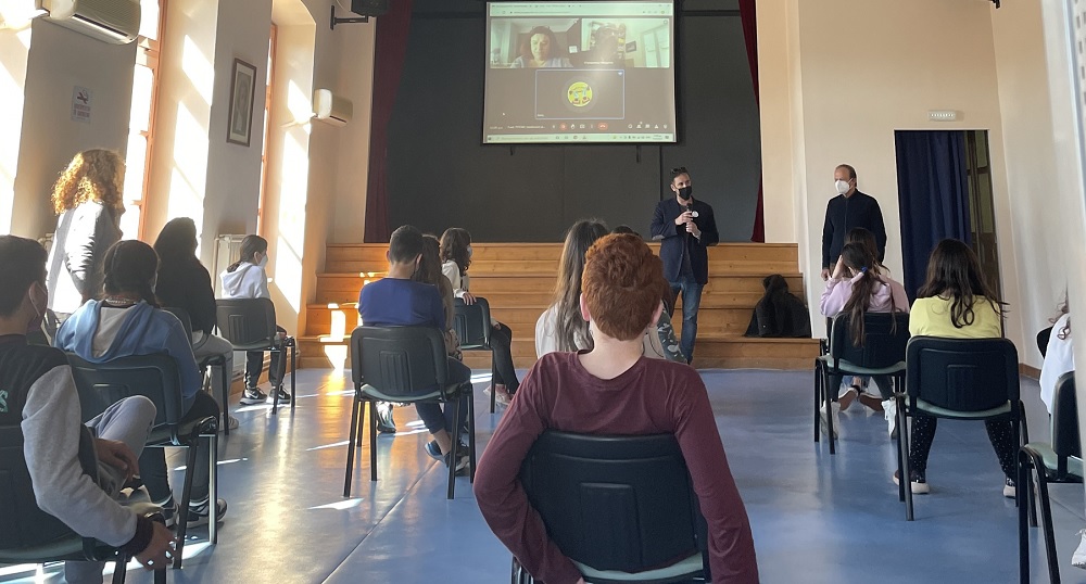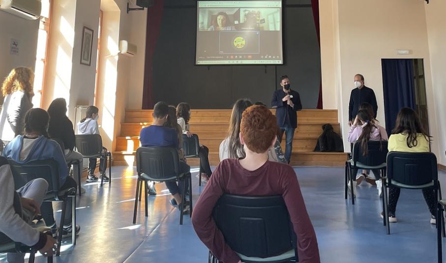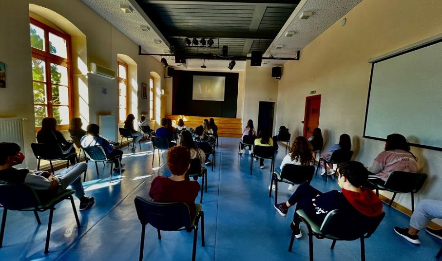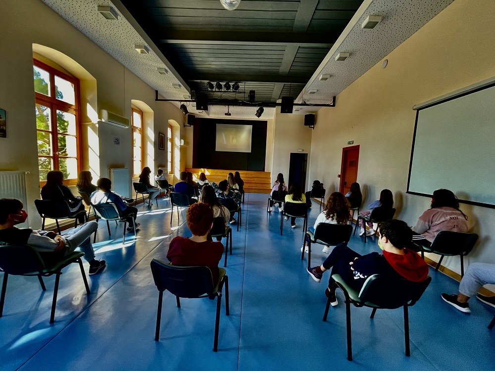 Οι μαθητές είχαν την ευκαιρία να συνομιλήσουν, σε ζωντανή σύνδεση, με τον σκηνοθέτη του ντοκιμαντέρ, Χαράλαμπο Μαργαρίτη και τη διευθύντρια του festival, Μαρία Ανεστοπούλου.