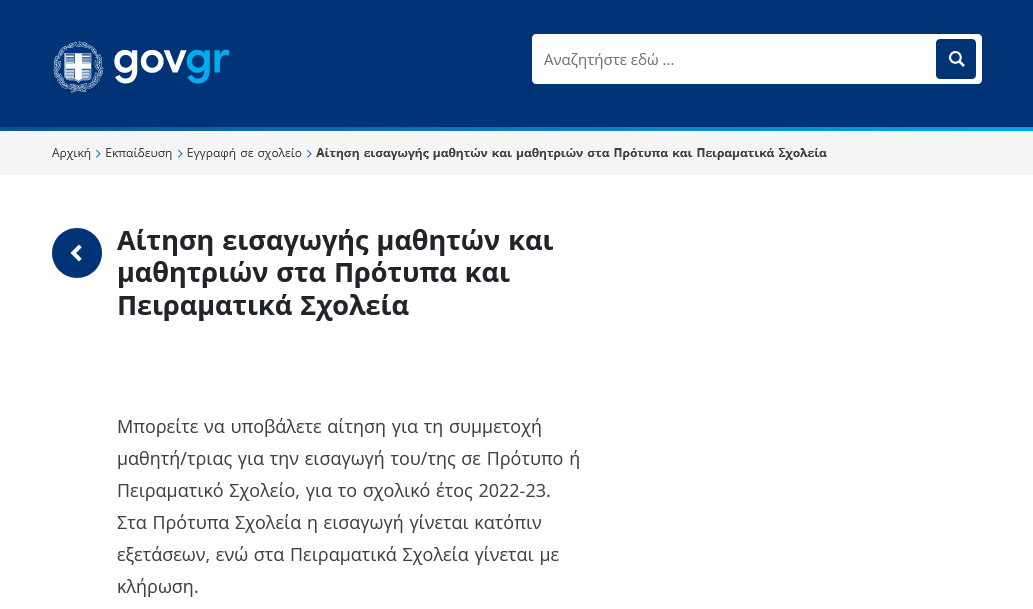 Η ηλεκτρονική κλήρωση για την επιλογή των μαθητών θα πραγματοποιηθεί την Παρασκευή 6 Μαΐου 2022.