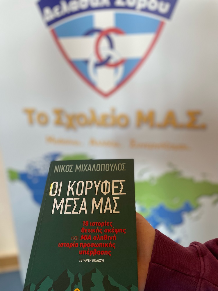 Την Πέμπτη 10 Μαρτίου ο συγγραφέας επισκέφτηκε τα Εκπαιδευτήρια Δελασάλ Σύρου, πραγματοποιώντας δύο εμπνευσμένες συναντήσεις με τους μαθητές του Γυμνασίου και του Λυκείου. Ο συγγραφέας ξεδίπλωσε μπροστά στα μάτια των μαθητών ένα ταξίδι θετικής σκέψης, πίστης και ώθησης βασισμένη στο best seller του “Οι Κορυφές Μέσα Μας”, ένα βιβλίο που αγαπήθηκε πολύ από κοινό και κριτικούς.