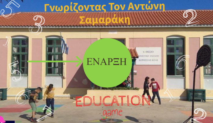 «Η Ε’ τάξη συνεργάστηκε με την Στ΄ τάξη του δημοτικού σχολείου Κορρησίας Κέας. Πραγματοποιήθηκαν συνολικά 4 τηλεδιασκέψεις με τα δύο σχολεία. Οι 3 από την τάξη και η 1 κατά τη διάρκεια της καραντίνας. Σε αυτές τις τηλεδιασκέψεις είχαμε την ευκαιρία να παίξουμε και να μάθουμε για τον Αντώνη Σαμαράκη, να παρουσιάσουμε το χωριό και το νησί μας, καθώς και να γνωρίσουμε αντίστοιχα το νησί της Κέας. Για τον σκοπό αυτό χωριστήκαμε σε τρεις ομάδες όπου η κάθε ομάδα ανέλαβε να παρουσιάσει το σχολείο, το χωριό και το νησί αντίστοιχα. ‘Έτσι βγήκαμε στο χωριό, φωτογραφίσαμε συγκεντρώσαμε πληροφορίες και στο τέλος ετοιμάσαμε τις παρουσιάσεις μας.