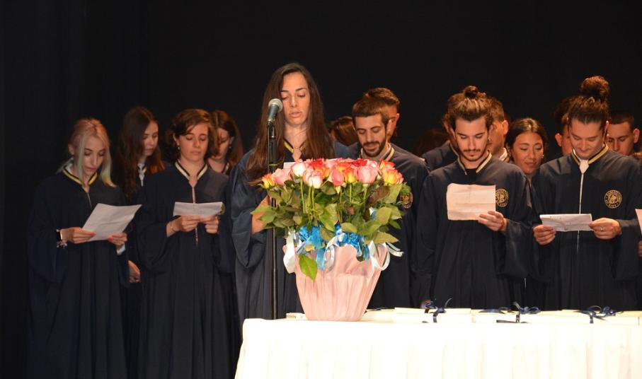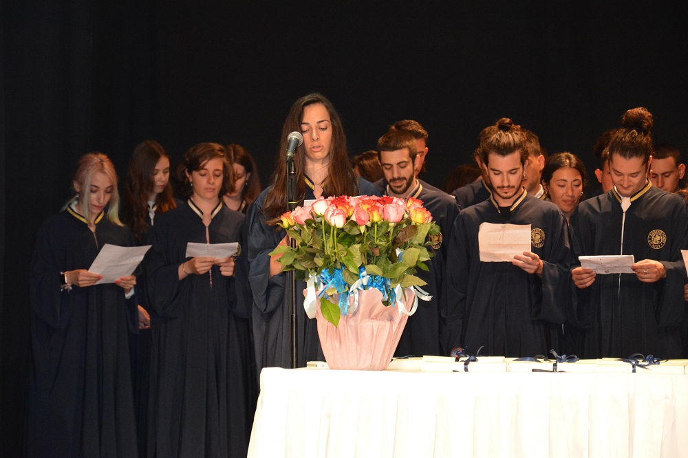 Με την ολοκλήρωση των ομιλιών, οι απόφοιτοι κλήθηκαν να ανέβουν όλοι πάνω στη σκηνή για την ορκωμοσία και την παραλαβή των διπλωμάτων τους. Με πανηγυρισμούς και χειροκροτήματα η συγκινητική αυτή εκδήλωση και ένας από τους σημαντικότερους κύκλους της ζωής των παιδιών που τώρα καλούνται να αντιμετωπίσουν την ενήλικη ζωή με όλα τα δύσκολα και τα όμορφα που εμπεριέχει.