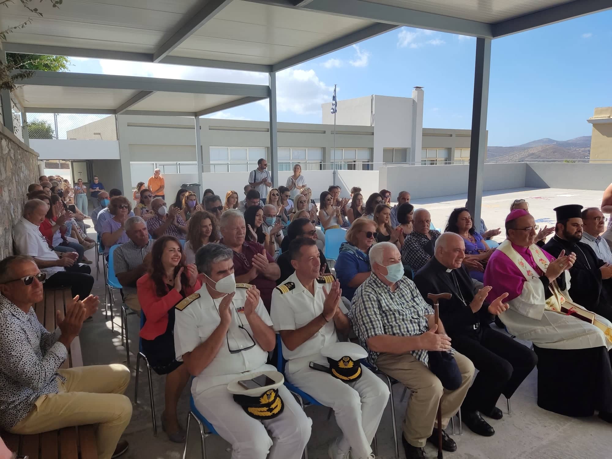 Ο αγιασμός των θεμελίων έγινε από τον Καθολικό Επίσκοπο, Σεβ. π. Πέτρο Στεφάνου, ενώ στη λιτή εκδήλωση, μίλησε για τα βήματα προόδου των Εκπαιδευτηρίων ΔΕΛΑΣΑΛ Σύρου, ο Γενικός Διευθυντής, Διονύσης Μεσσάρης και ακολούθως, απηύθυναν χαιρετισμό ο Δήμαρχος Σύρου – Ερμούπολης, Νίκος Λειβαδάρας, ο Διευθυντής Δευτεροβάθμιας Εκπαίδευσης, Ξενοφών Βαμβακερός και ο Λιμενάρχης Σύρου, Γιάννης Βαμβακούσης.