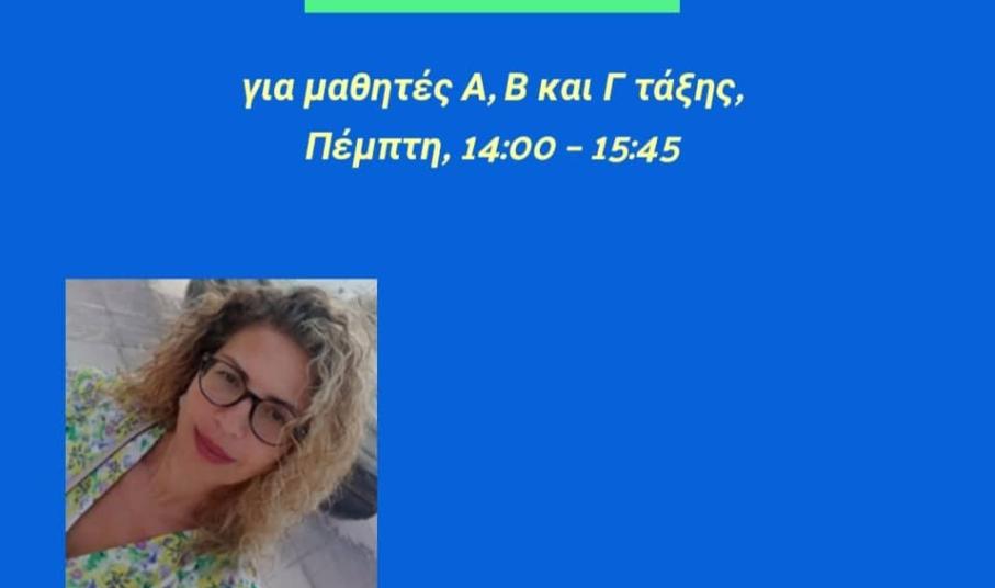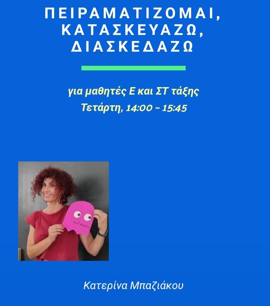 Πειραματίζομαι, κατασκευάζω, διασκεδάζω, Κατερίνα Μπαζιάκου (Ε και ΣΤ τάξης, Τετάρτη, 14:00 – 15:45)
