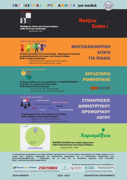 Ξεκίνησαν τα εκπαιδευτικά προγράμματα για παιδιά στη Λέσχη Ανδρίων!!!