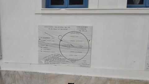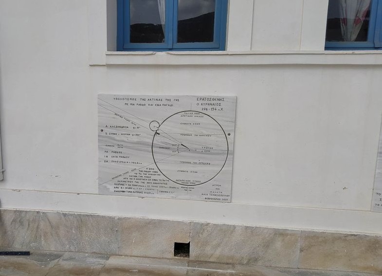 Συγκεκριμένα, το πρώτο έργο αφορά τον Υπολογισμό των ημερών του έτους σε 365 από τον Θαλή τον Μιλήσιο περίπου το 600 π.Χ., το δεύτερο έργο τη Χρυσή Τομή από τον Πυθαγόρα περίπου το 550 π.Χ. και το τρίτο έργο τον Υπολογισμό της Ακτίνας της Γης με ένα μπαστούνι και ένα πηγάδι από τον Ερατοσθένη περίπου το 240 π.Χ. Τα τρία αυτά θέματα, ήρθαν να προστεθούν στο Αναλημματικό Ηλιακό ρολόι που τοποθετήθηκε το 2022 στον ίδιο χώρο και το Ανεμολόγιο που βρίσκεται ακριβώς έξω από την Αυλόπορτα του Δημοτικού Σχολείου και τοποθετήθηκε το 2021 αποτελούν μια ενότητα έργων στο Δημοτικό Σχολείο του Πύργου Τήνου.