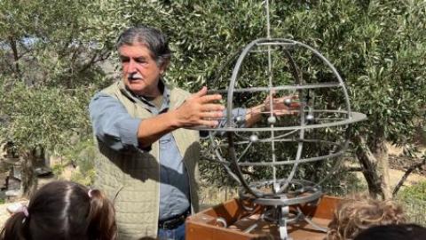 Ο κ. Τζαβελόπουλος μας εξήγησε με απλό τρόπο πως χρησιμοποιούμε τους αριθμούς Fibonacci και πως αυτοί εμφανίζονται παντού στη φύση, στις αναλογίες του προσώπου μας, του σώματος μας ή μερών αυτού, στα φύλλα φυτών, ακόμα και στο ανθρώπινο DNA. Επίσης, υπάρχει αναπαράσταση του ηλιακού συστήματος με κλίμακα αποστάσεων και διαστάσεων. Εντυπωσιακή είναι και η αναπαράσταση του υπολογισμού της ακτίνας της Γης από τον Ερατοσθένη τον Κυρηναίο το 250 π.Χ. Στο χώρο υπάρχει, ακόμα, αναπαράσταση οχτώ τρόπων ανύψωσης και μεταφοράς μαρμάρινων όγκων, που χρησιμοποιήθηκαν για παράδειγμα κατά την κατασκευή της Ακρόπολης ή ακόμα και για τη μεταφορά μαρμάρων στην Τήνο παλιότερα από τους μαρμαροτεχνίτες του νησιού.