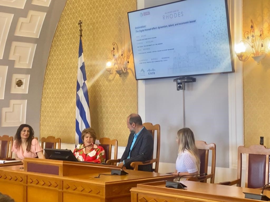 H εκδήλωση συμπεριελάμβανε, μεταξύ άλλων, συζητήσεις και ομιλίες του Περιφερειάρχη Νοτίου Αιγαίου, Γιώργου Χατζημάρκου, του Δημάρχου Ρόδου Αντώνη Καμπουράκη, του Διευθυντή Ψηφιακού Μετασχηματισμού της Cisco παγκοσμίως Guy Diedrich και άλλων.  Η συζήτηση του Gianpaolo Barozzi, Sr. Dir. Purpose Strategy & Innovation με την Πρυτάνισσα του Πανεπιστημίου Αιγαίου Καθ. Χρυσή Βιτσιλάκη αναφέρθηκε στη συνεργασία που οι digital nomads και η διεύθυνση καινοτομίας της Cisco ανέπτυξαν τους τελευταίους μήνες με ερευνητικές ομάδες του Πανεπιστημίου στη Ρόδο. Αναδείχθηκε η σημαντικότητα και η προοπτική συνεργασίας των δύο φορέων, όχι μόνο στο πλαίσιο του NetAcademy της Cisco, αλλά και των συνεργιών που ήδη έχουν ξεκινήσει για ανάπτυξη καινοτόμων συνεργατικών έργων με τη χρήση προηγμένων τεχνολογιών που αφορούν και την τοπική κοινωνία, όπως η υπό εξέλιξη ψηφιακή περιήγηση στην κοιλάδα των Πεταλουδών με τη χρήση επαυξημένης πραγματικότητας και η μελέτη του φαινομένου των ψηφιακών νομάδων και με την αξιοποίηση γεοχωρικών συστημάτων και δεδομένων.