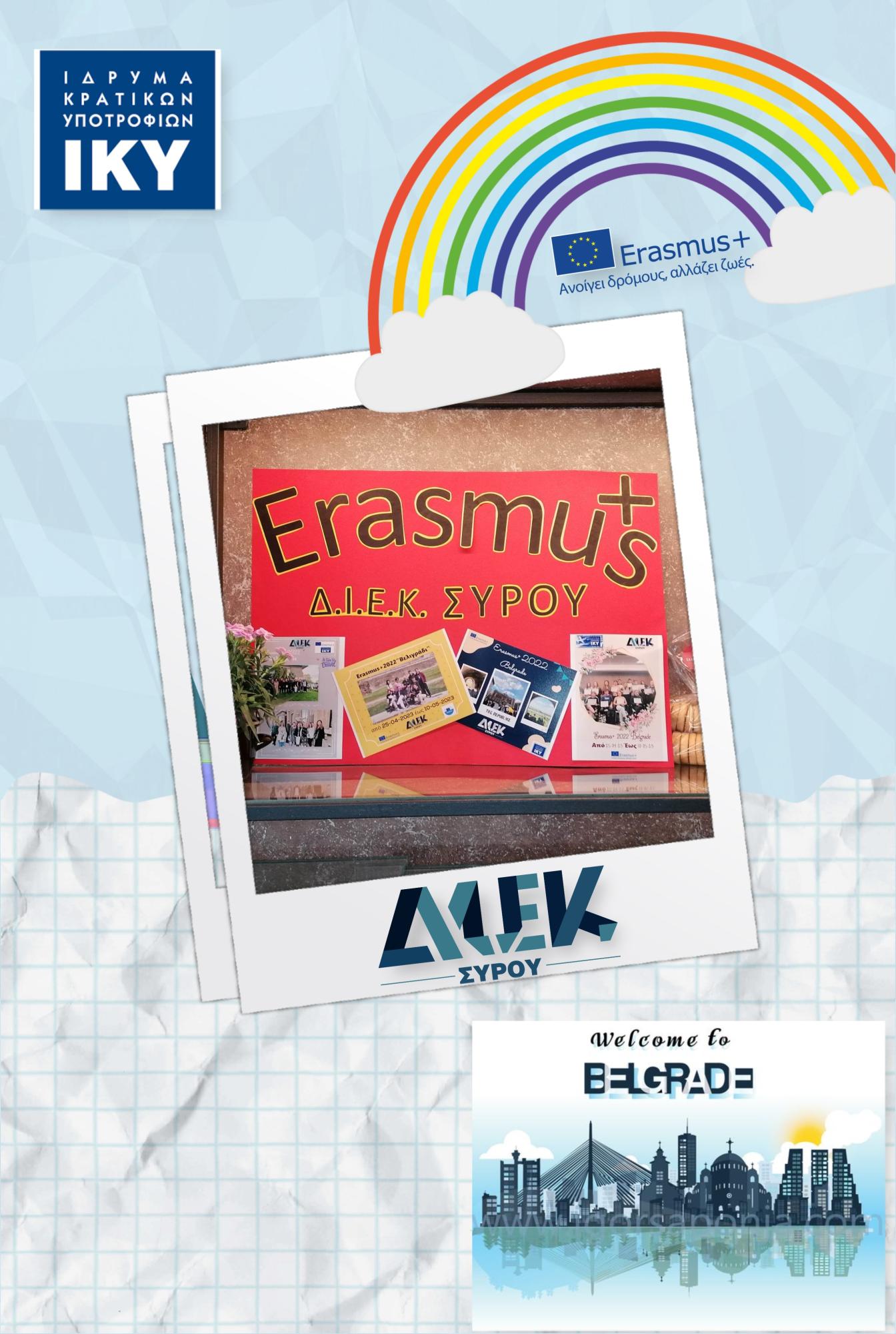 Ειδικότερα, υλοποιήθηκε το πρόγραμμα με κωδικό αριθμό 2022-1-EL01-KA122-VET-000079226 και τίτλο «Γέφυρες Πολιτισμού για την προώθηση της Προσκυνηματικής Περιήγησης και την ανάπτυξη του Πολιτισμικού Τουρισμού: Κυκλάδες - Σερβία» που αφορά την Επιμόρφωση εκπαιδευομένων των ειδικοτήτων του Τομέα Τουρισμού του ΔΙΕΚ Σύρου στο Βελιγράδι της Σερβίας για δύο εβδομάδες από 25-04-2023 έως 10-05-2023, (όλα τα έξοδα διαμονής, διατροφής και μεταφοράς καλύφθηκαν από το πρόγραμμα). Συμμετείχαν μία ομάδα εκπαιδευομένων των 15 σπουδαστών από τις ειδικότητες του Τομέα Τουρισμού με τη συνοδό τους.