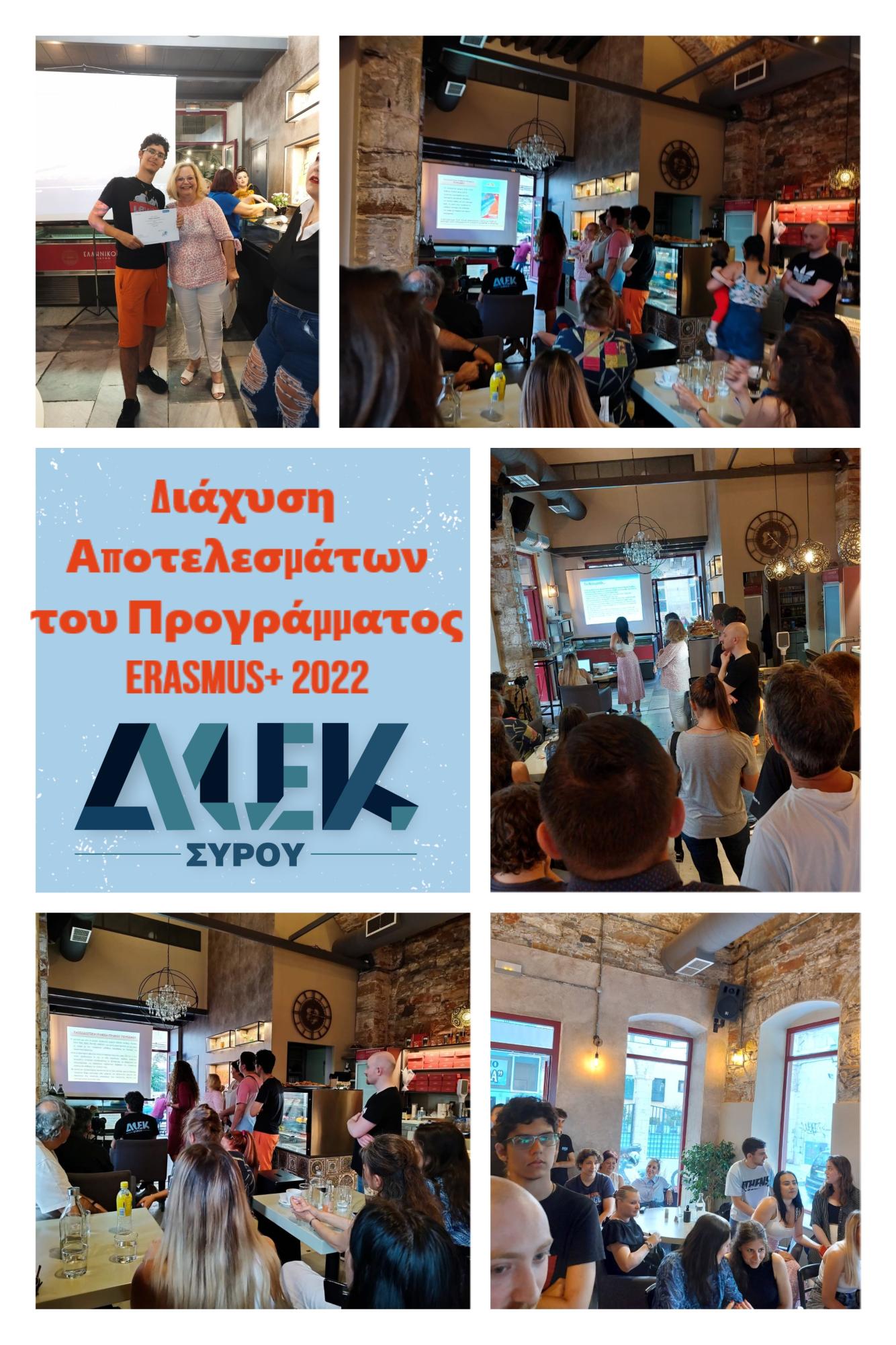 Στην εκδήλωση έγινε η κατάθεση των εμπειριών των συμμετεχόντων του ΔΙΕΚ Σύρου στο πρόγραμμα Erasmus+ 2022. Σπουδαστές και εκπαιδευτικοί μοιράστηκαν τις εντυπώσεις τους και ευχαρίστησαν για την ευκαιρία που τους δόθηκε και την πολύ σημαντική εμπειρία που αποκόμισαν.