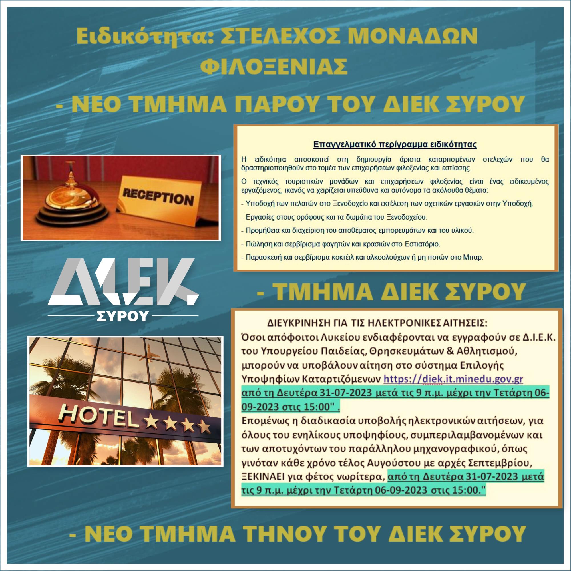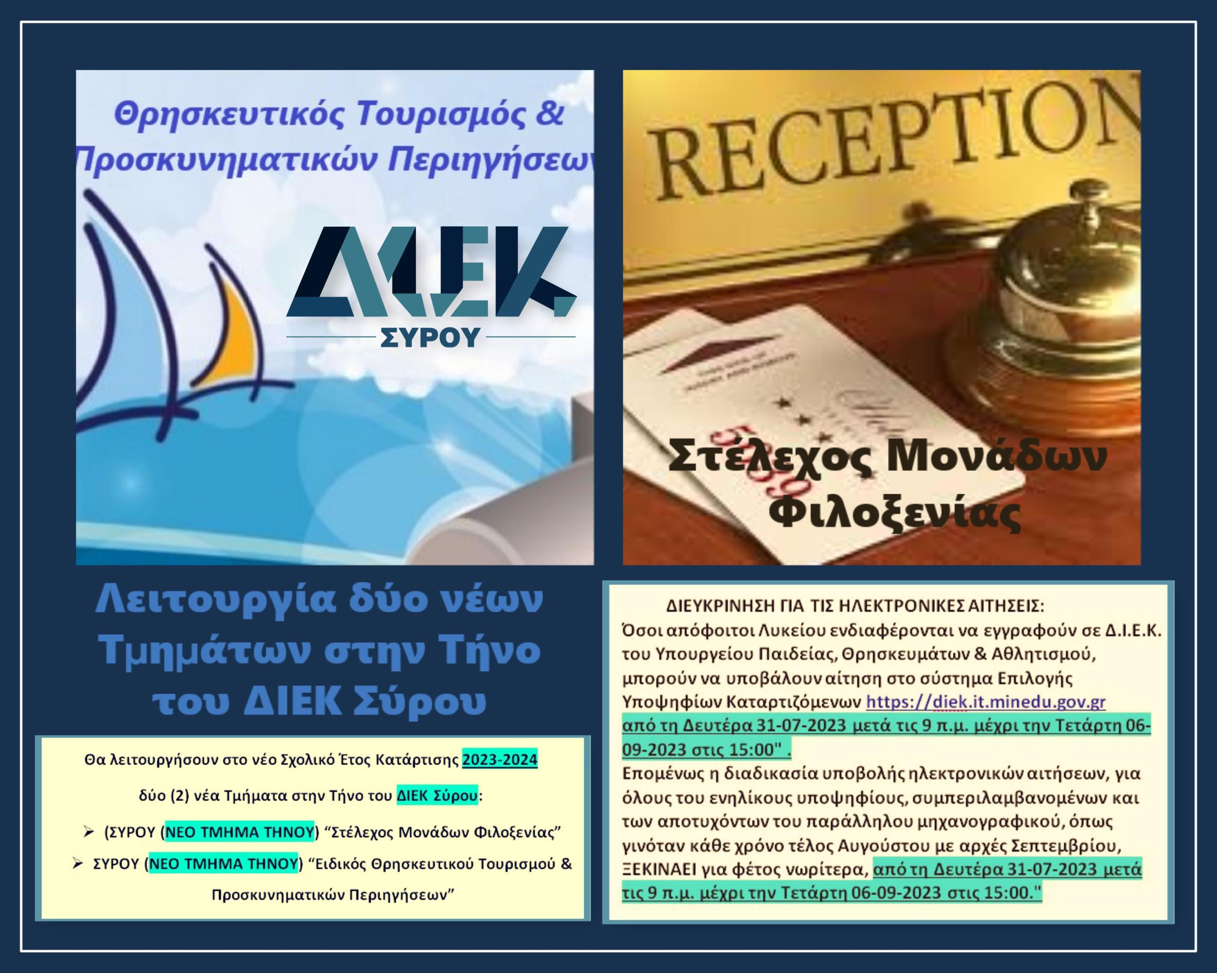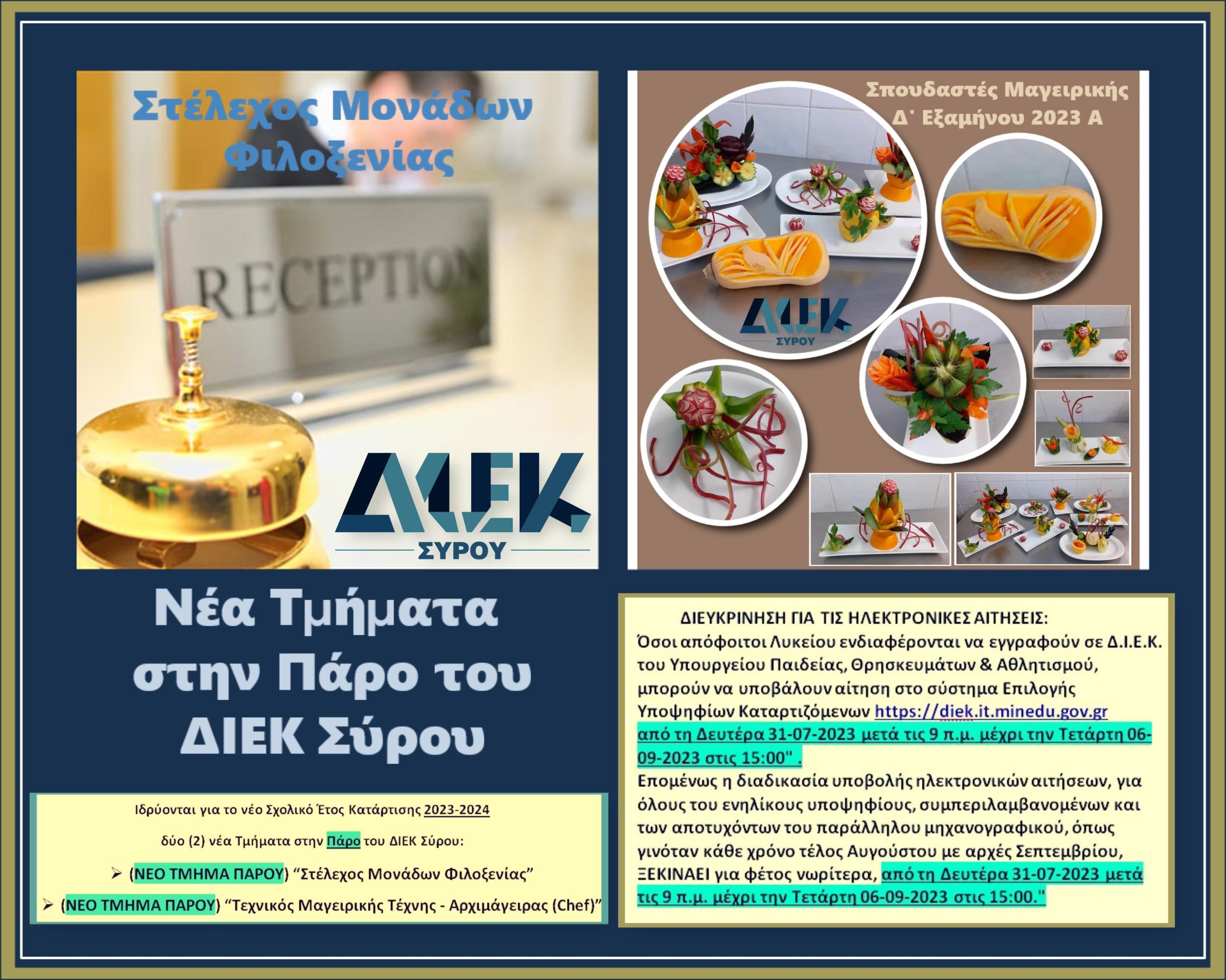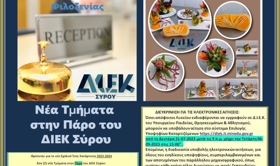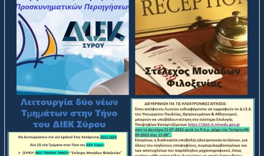 ΝΕΕΣ ΕΙΔΙΚΟΤΗΤΕΣ ΤΟΥ ΔΙΕΚ ΣΥΡΟΥ 2023-2024