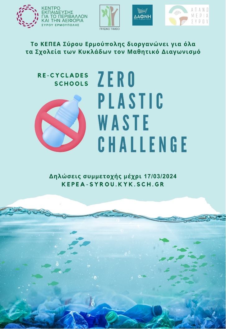 Με στόχο την ευαισθητοποίηση για τη μείωση των πλαστικών «αποτυπωμάτων» μας στο περιβάλλον, το Κέντρο Εκπαίδευσης για το περιβάλλον και την αειφορία της Σύρου, σε συνεργασία με το δίκτυο «Δάφνη» και την ΚΟΙΝΣΕΠΤ Απάνω Μεριάς, διοργανώνει έναν μαθητικό διαγωνισμό σε επίπεδο Κυκλάδων.