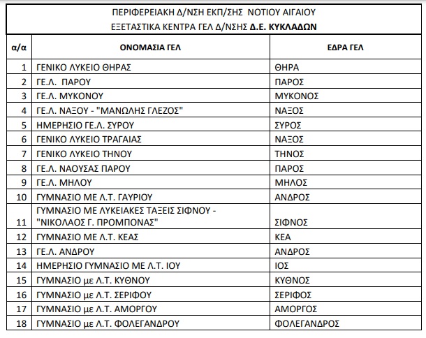 Δείτε τη λίστα με τα εξεταστικά κέντρα εδώ