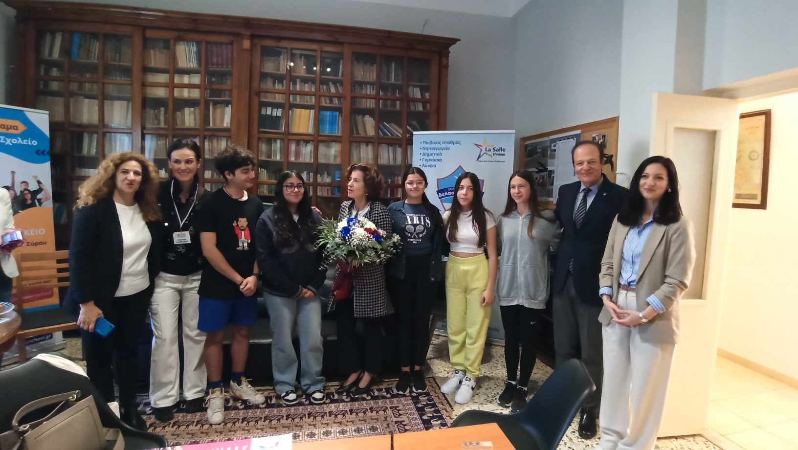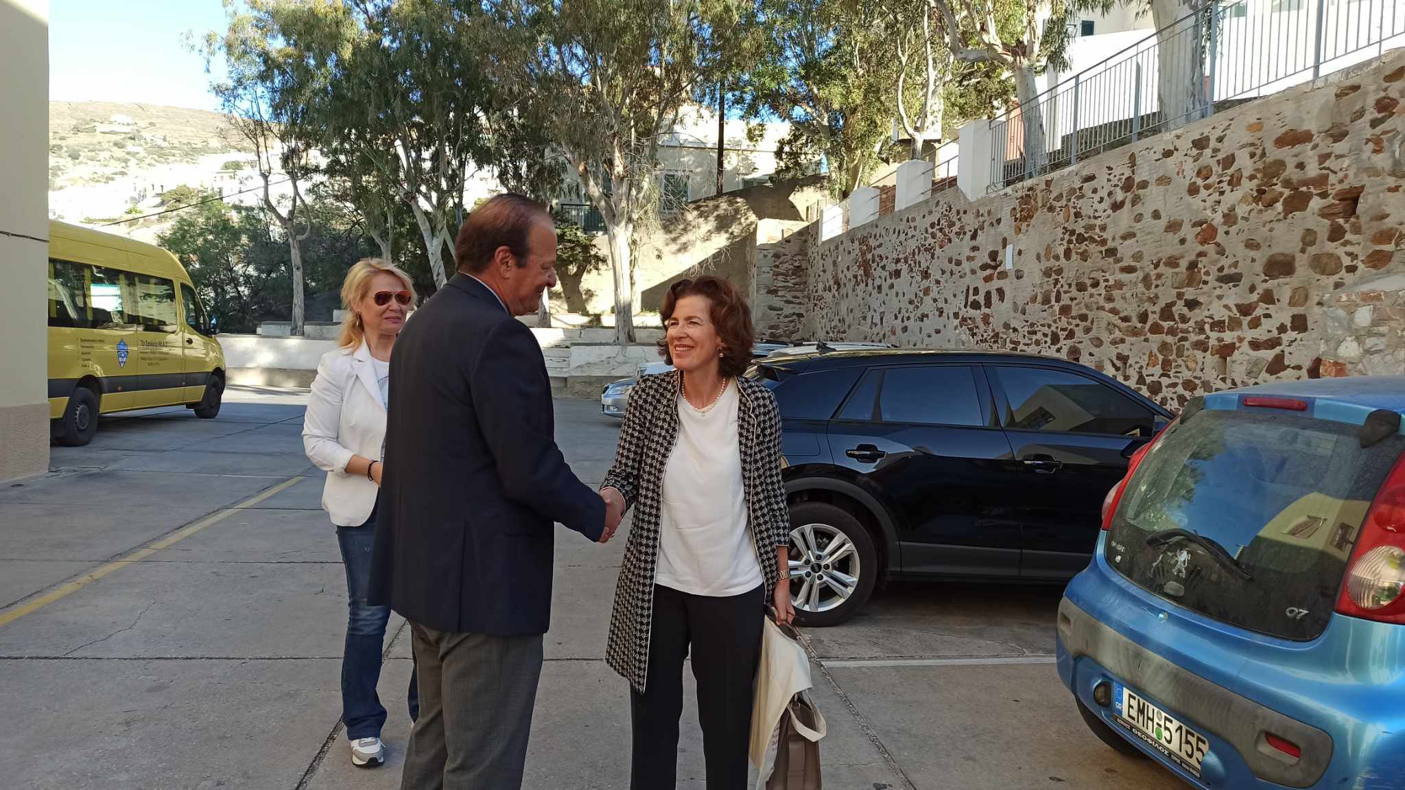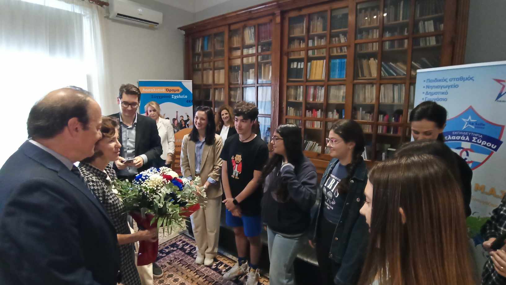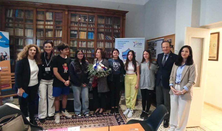 Την πρέσβειρα της Γαλλίας στην Ελλάδα, Laurence Auer, υποδέχθηκαν μαθητές, καθηγητές και διοίκηση των εκπαιδευτηρίων ΔΕΛΑΣΑΛ Σύρου.