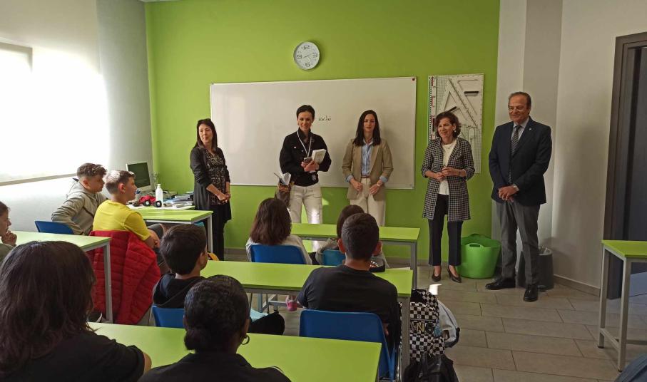 Στη συνέχεια ξεναγήθηκε στους χώρους των εκπαιδευτηρίων και συγκεκριμένα στις αίθουσες του βρεφονηπιακού σταθμού "Η Φωλιά", του νηπιαγωγείου "Ο Άγιος Γεώργιος", του Δημοτικού Σχολείου, του Βαμβακάρειου Γυμνασίου και λυκείου, ενώ συναντήθηκε και με φοιτήτριες των παιδαγωγικών σχολών της Γαλλίας, στο πλαίσιο της συνεργασίας που έχουν αναπτύξει τα ΔΕΛΑΣΑΛ τα τελευταία τρία χρόνια.