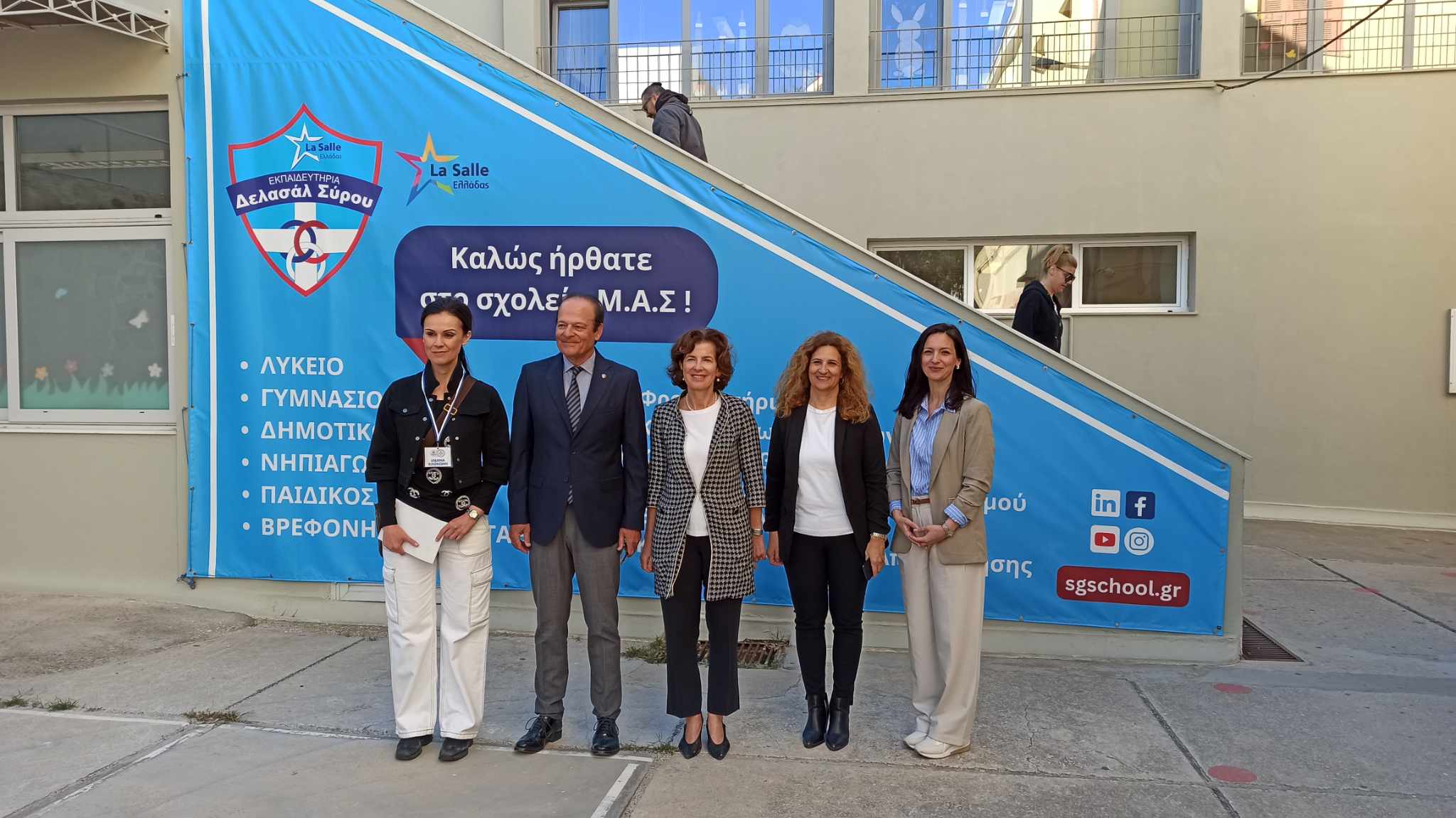 Εκτός από την περιήγησή της στους χώρους του σχολικού συγκροτήματος, η πρέσβειρα της Γαλλίας στην Ελλάδα, Laurence Auer, είχε την ευκαιρία να ανταλλάξει απόψεις με τον γενικό διευθυντή των εκπαιδευτηρίων ΔΕΛΑΣΑΛ στη Σύρο, Διονύση Μεσσάρη, πάνω σε θέματα που άπτονται της συνεργασίας της Πρεσβείας της Γαλλίας με τα Ελληνογαλλικά σχολεία, στα οποία ανήκουν και τα εκπαιδευτήρια των ΔΕΛΑΣΑΛ, αλλά και σε θέματα εκπαίδευσης.