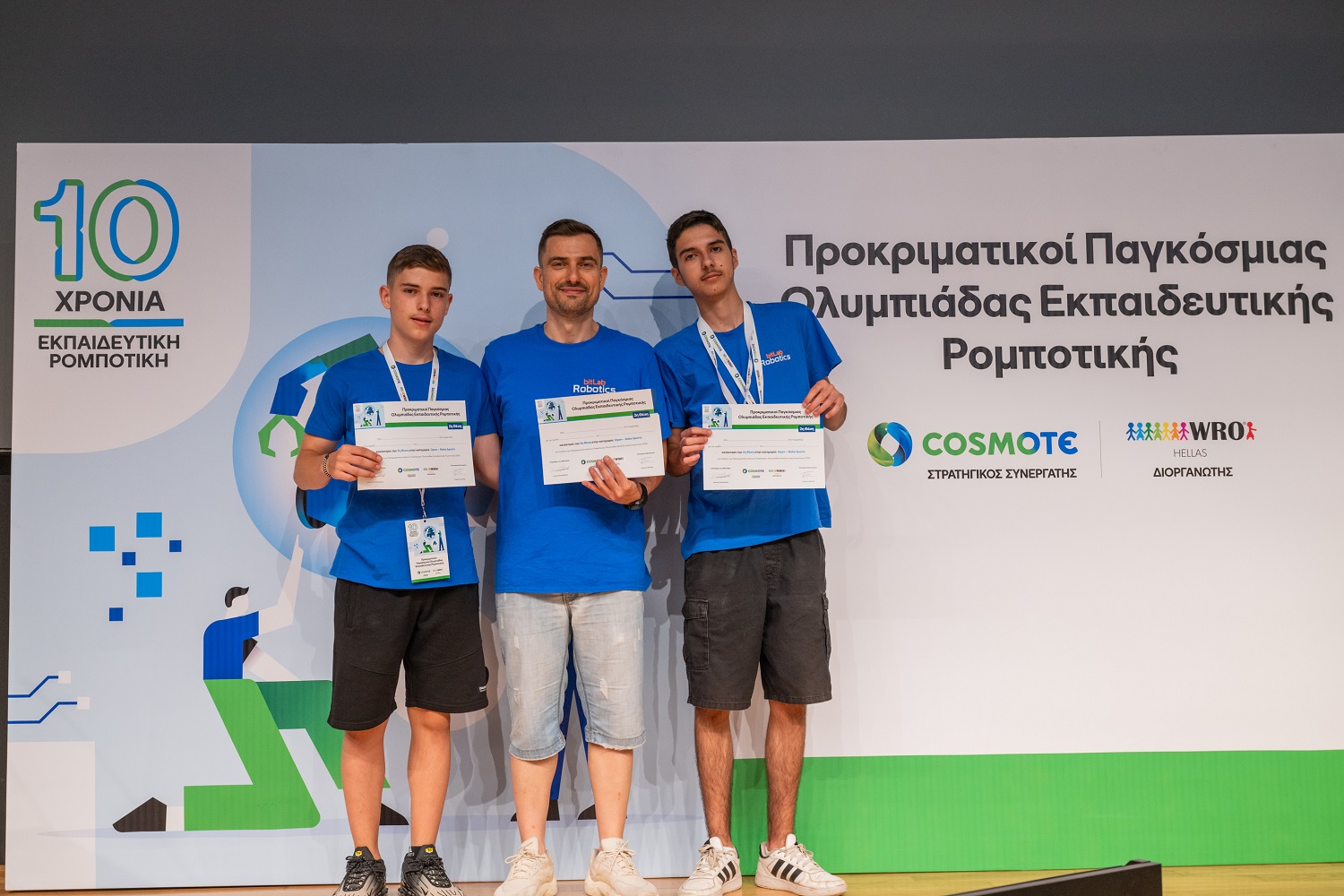 Η ελληνική αποστολή που θα εκπροσωπήσει τη χώρα μας στην Παγκόσμια Ολυμπιάδα Ρομποτικής (World Robot Olympiad™) αναδείχτηκε μέσα από τον προκριματικό διαγωνισμό που διοργανώθηκε από τον WRO Hellas με στρατηγικό συνεργάτη την COSMOTE σε συνέχεια του Πανελλήνιου Διαγωνισμού. Συνολικά συμμετείχαν πάνω από 80 ομάδες και 320 μαθητές και προπονητές από 8 περιφέρειες της Ελλάδας.