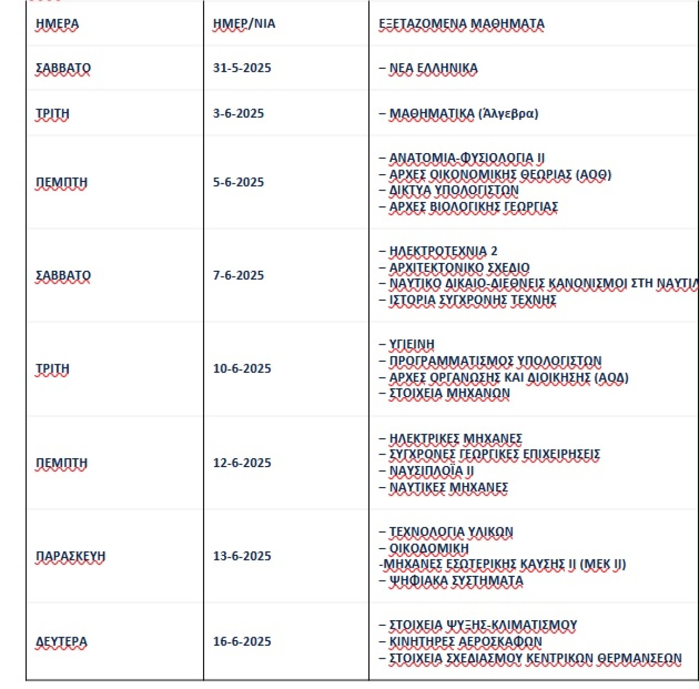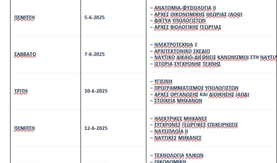 μέχρι τις 09:30 π.μ. για τα μαθήματα με ώρα εξέτασης 10:00 π.μ.