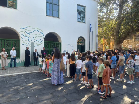 Ο δήμαρχος Τήνου, Παναγιώτης Κροντηράς, μαζί με στελέχη της Δημοτικής Αρχής, βρέθηκαν στους αγιασμούς όλων των σχολικών μονάδων και του παιδικού σταθμού του Δήμου, μεταφέροντας το μήνυμα της συνεργασίας και της στήριξης προς την εκπαιδευτική κοινότητα.