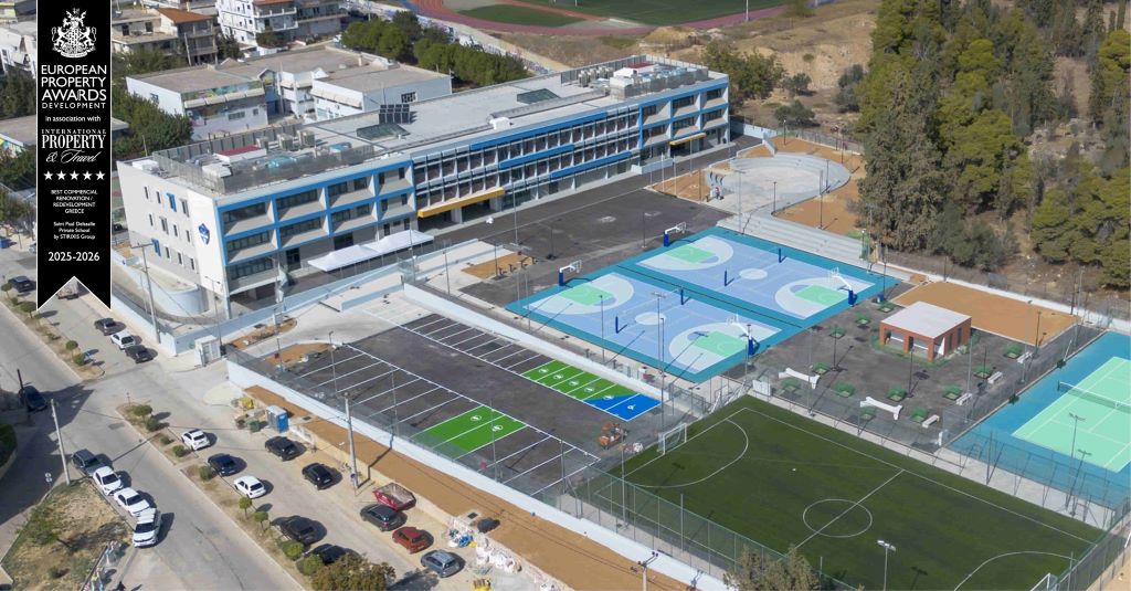 Ο λόγος για το νέο κτήριο των εκπαιδευτηρίων Saint Paul - De La Salle στον Άλιμο, το οποίο απέσπασε το βραβείο για την καλύτερη Εμπορική Ανακαίνιση / Αναβάθμιση στην Ελλάδα (Best Commercial Renovation - Redevelopment in Greece) στα International Property Awards 2025.