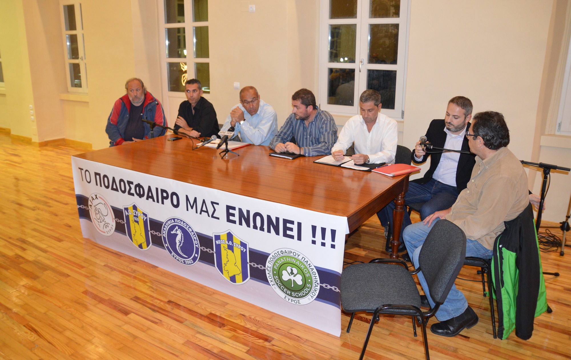 Πραγματοποιήθηκε χθες το απόγευμα η συνέντευξη Τύπου για τη συνεργασία των πέντε ακαδημιών της Σύρου, Αίας Σύρου, Α.Ο. Σύρου, Α.Π. Σύρος 2002, Νεος Α.Ο. Σύρου και Παναθηναϊκός Σύρου, για να ανακοινώσουν την δημιουργία μιας ομάδας επίλεκτων αθλητών κατηγορίας προπαίδων (2003-04), για ένα πιλοτικό προπονητικό πρόγραμμα εξαμήνου, που θα ξεκινήσει από την 1η Ιανουαρίου και θα διαρκέσει έως το τέλος Ιουνίου του 20015.