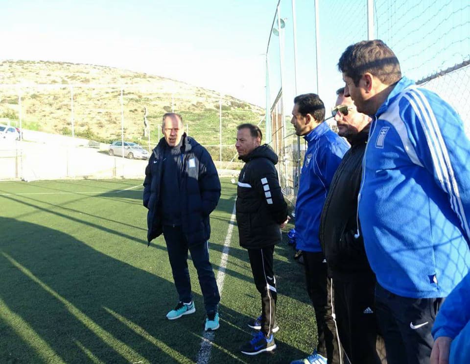 Ο Ομοσπονδιακός προπονητής παρακολούθησε την προπόνηση των κοριτσιών, μίλησε στις αθλήτριες για το γυναικείο ποδόσφαιρο και συζήτησε με υπευθύνους για το μέλλον και την ανάπτυξη του γυναικείου ποδοσφαίρου στις Κυκλάδες.