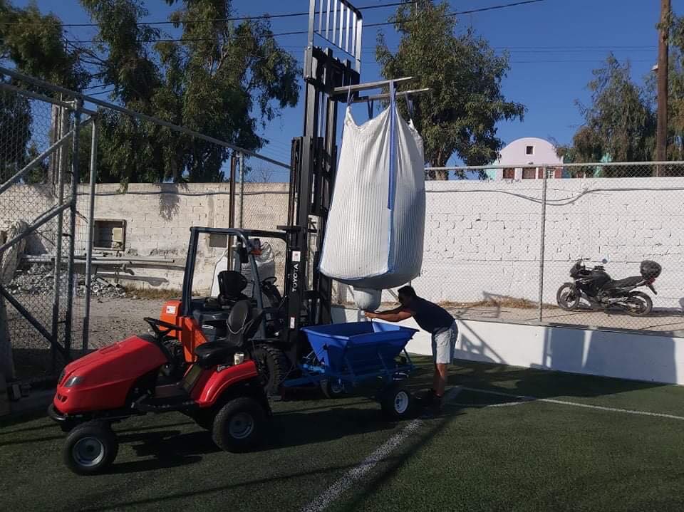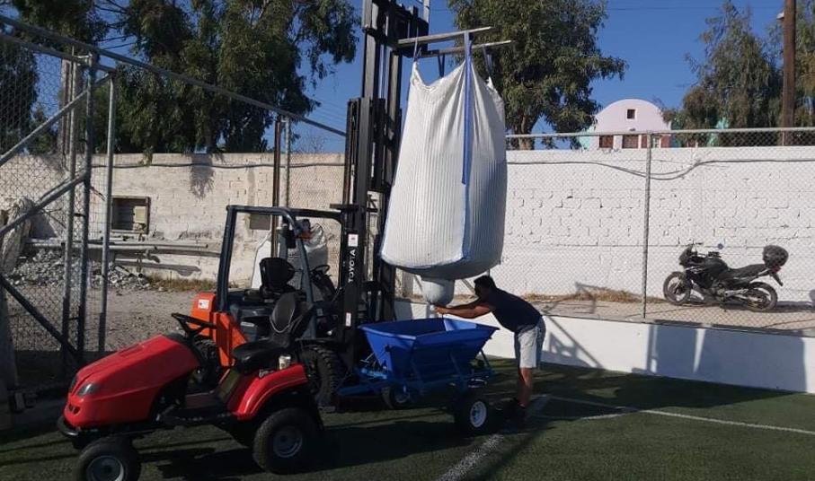 Πιο συγκεκριμένα στο δημοτικό γήπεδο Θήρας, στο δημοτικό γήπεδο Καμαρίου, στο γήπεδο 5χ5 του Αγίου Γεωργίου και στο 5χ5 του Ακρωτηρίου πραγματοποιήθηκαν εργασίες καθαρισμού, απομάκρυνσης ξένων σωμάτων , χτενίσματος και προσθήκης υλικού.