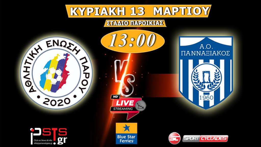 Παρακολουθήστε σε ζωντανή μετάδοση τον αγώνα της 4ης αγωνιστικής για την Β' Φάση του πρωταθλήματος της ΕΠΣ Κυκλάδων μεταξύ της ΑΕ Πάρου και του Πανναξιακού.