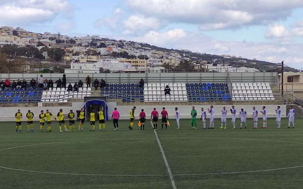 Η εικόνα του αγώνα βέβαια δεν άλλαξε στο δεύτερο ημίχρονο, η Σαντορίνη είχε τον έλεγχο, έφτασε κοντά αρκετές φορές στο γκολ και δεν απειλήθηκε ποτέ από τους φιλοξενούμενους.