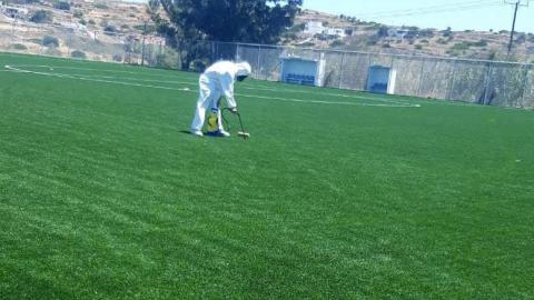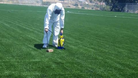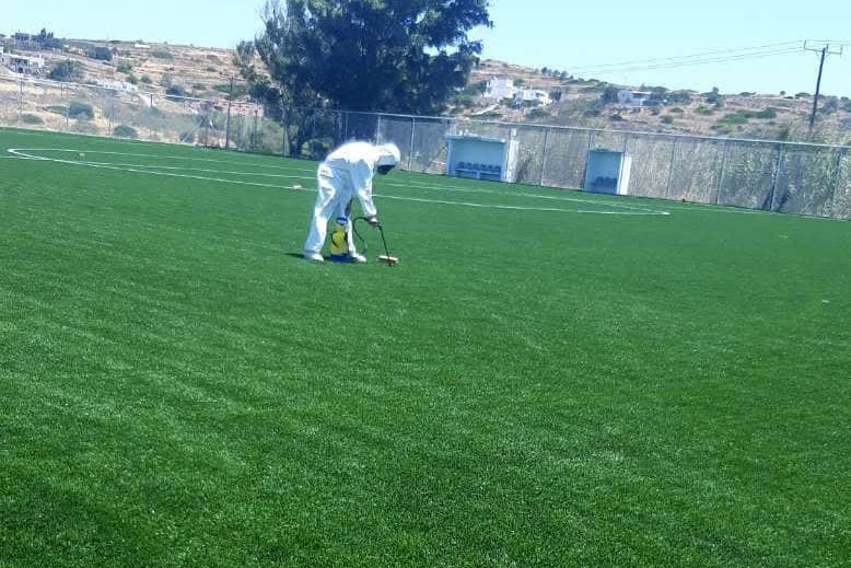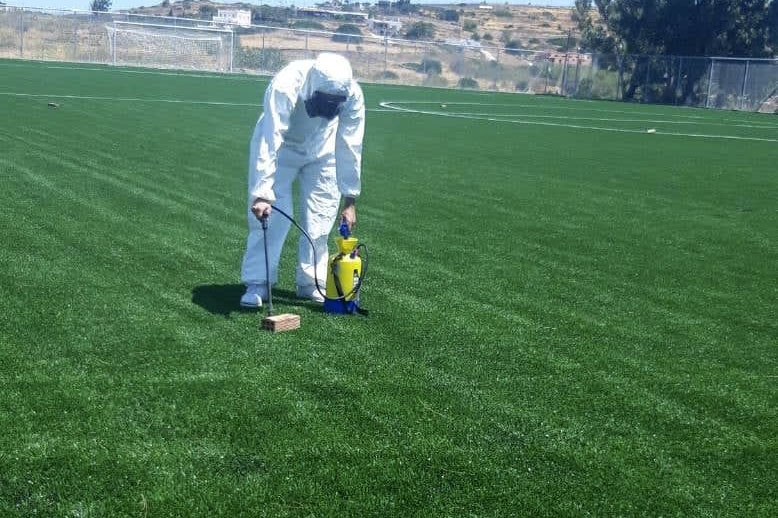 Η Περιφέρεια κινήθηκε από την πλευρά της άμεσα και ενημέρωσε τον εργολάβο ώστε στη συνέχεια να προχωρήσει σε όλες τις απαιτούμενες ενέργειες προς αντιμετώπιση του προβλήματος. Από εκείνη τη στιγμή ξεκίνησε ένας μεγάλος αγώνας, καθώς οι αρμόδιοι χρειάστηκε να τα βάλουν με την ίδια τη φύση. Κάθε εβδομάδα υπάρχει απεντόμωση του γηπέδου ώστε να απομακρυνθούν τα μυρμήγκια και το γήπεδο να σωθεί.