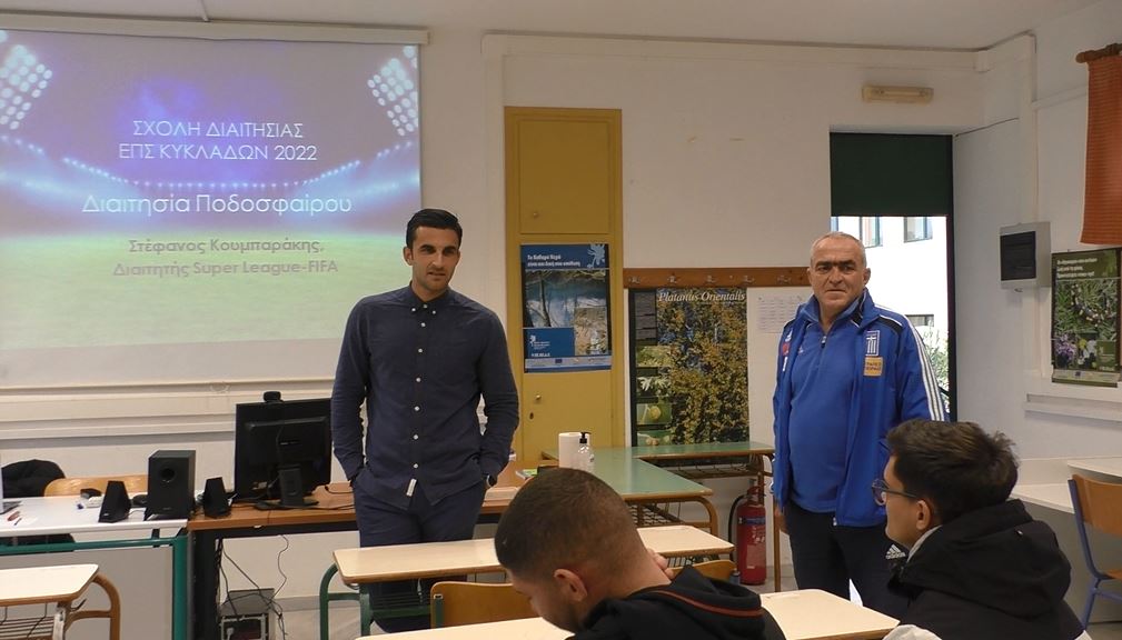 Με μαθητές του Λυκείου είχε την ευκαιρία να συνομιλήσει ο διεθνής Συριανός διαιτητής Στέφανος Κουμπαράκης. Ο Συριανός ρέφερι βρέθηκε στις αίθουσες του λυκείου μαζί με τον πρόεδρο της επιτροπής διαιτησίας της ΕΠΣ Κυκλάδων Λάμπρο Μενδρικό, για να μιλήσουν για την σχολή που θα πραγματοποιηθεί και στη Σύρο. Στόχος της επίσκεψης ήταν να βρεθούν παιδιά που να αγαπήσουν τη διαιτησία και στο άμεσο μέλλον να υπάρχουν νέοι διαιτητές στις Κυκλάδες. Από την πλευρά τους οι μαθητές είχαν την ευκαιρία να ρωτήσουν τον κ. Κουμπαράκη για όλα όσα αφορούν τόσο στο θέμα της διαιτησίας, όσο και πως είναι να διευθύνει τις μεγαλύτερες Ελληνικές ομάδες.