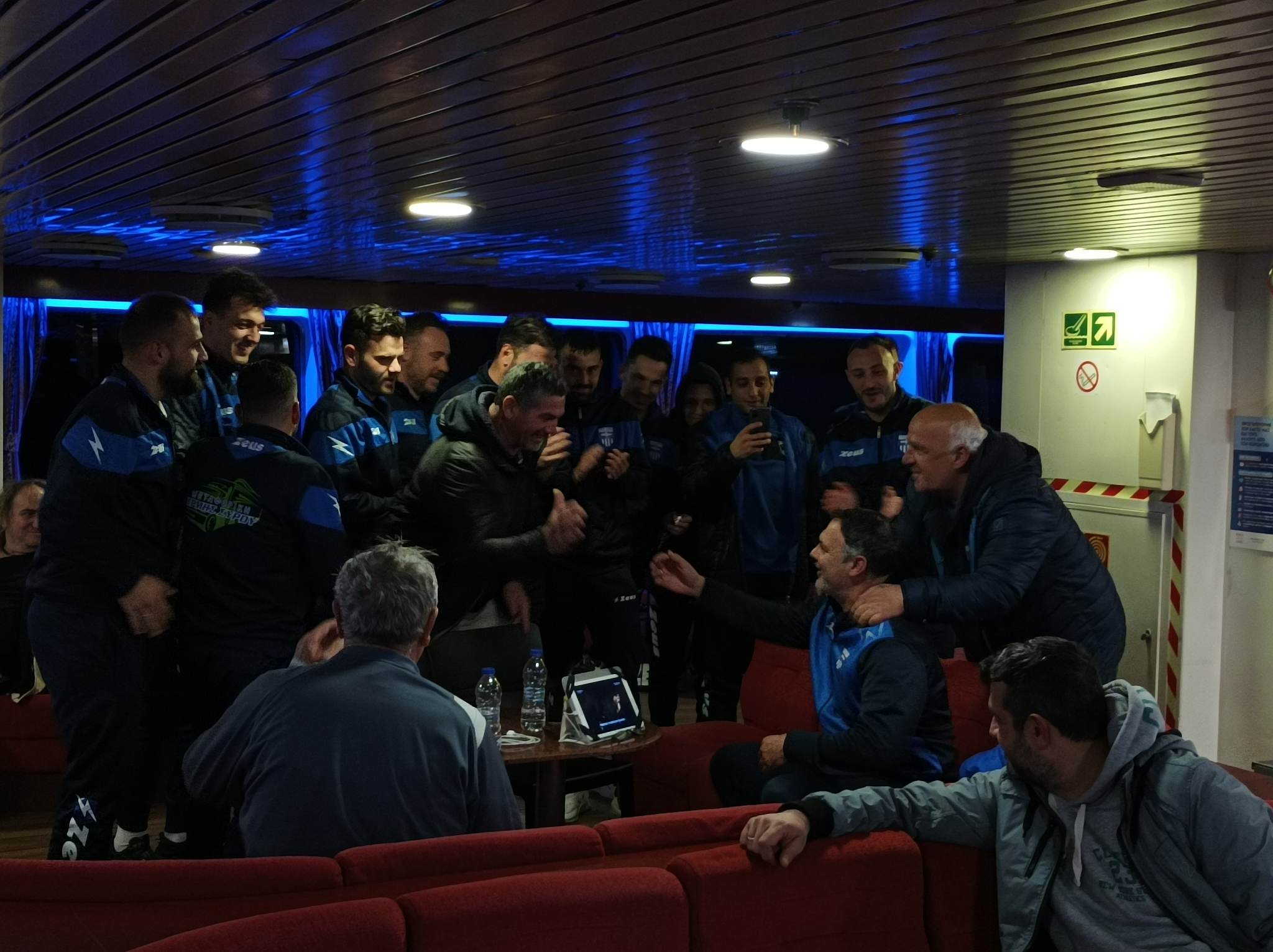 Οι ποδοσφαιριστές της Ελλάς Σύρου δεν ξέχασαν τα γενέθλια του βοηθού προπονητή Μιχάλη Λιγνού και του έκαναν έκπληξη εν πλω. Η χαρά και η ικανοποίηση ήταν εμφανής στο πρόσωπο του κ. Λιγνού που μόνο ευχαριστώ είχε να πει σε όλους όσους συμμετείχαν σ’ αυτήν την ωραία στιγμή της ζωής του. Να σημειώσουμε εδώ πως η αποστολή της Ελλάς Σύρου επέστρεφε από την Μήλο και τη νίκη της με 0-3 επί του Παμμηλιακού. Κάθε στιγμή παίκτες και τεχνικό επιτελείο δείχνουν πόσο καλά δεμένοι είναι και πως το κλίμα είναι οικογενειακό.