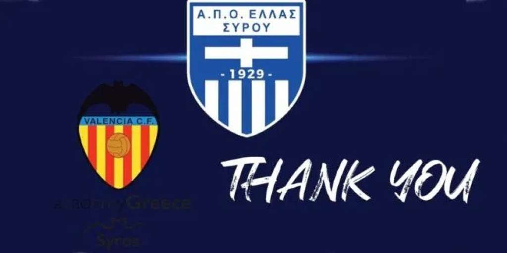 Ιδιαίτερα να ευχαριστήσουμε την υπεύθυνη της ακαδημίας της Βαλένθια Σύρου, Γεωργία Ρούσσου, γι αυτή την συνεργασία αυτά τα δύο χρόνια. Τέτοιες συνεργασίες πηγαίνουν πολλά χρόνια το ποδόσφαιρο μπροστά, πόσο μάλλον όταν πρόκειται για Συριανή ομάδα, η οποία αποδεικνύει έμπρακτα την ευχάριστη θέληση της και προσπάθεια να συμβάλει με το δικό της τρόπο στην επιτυχία της Ελλάς Σύρου.