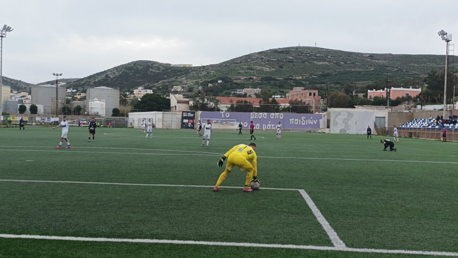 Να σημειώσουμε εδώ πως η Ελλάς Σύρου μετά από μία πάρα πολύ καλή προσπάθεια του Ζάχι από τα δεξιά της περιοχής, ο Λαντίκας με ψύχραιμο πλασέ άνοιξε το σκορ κάνοντας το 1-0. Οι φιλοξενούμενοι είχαν άμεση απάντηση αφού στο 60’ ο Βασιλειάδης από το ύψος του πέναλτι έφερε το παιχνίδι στα ίσα κάνοντας το 1-1.
