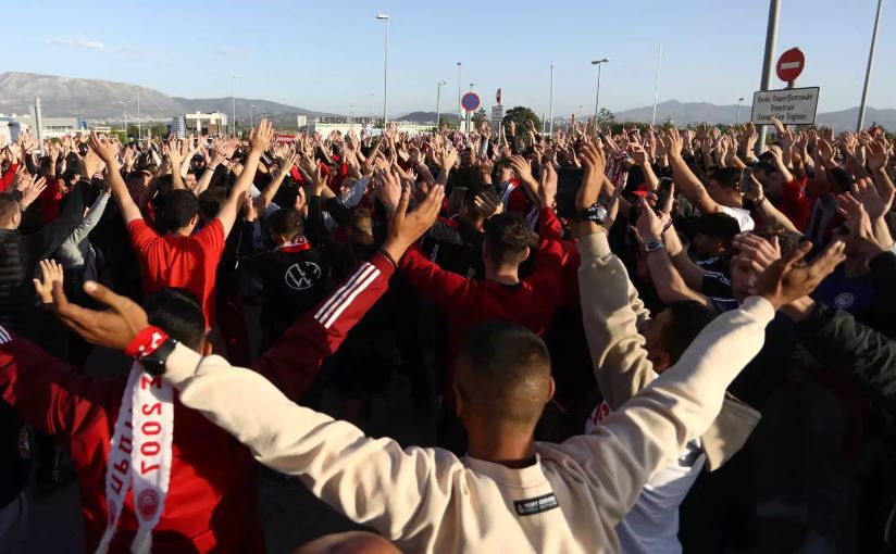 Πλήθος οπαδών συγκεντρώθηκαν από νωρίς στο Ελευθέριος Βενιζέλος και φωνάζοντας συνθήματα υποδέχτηκαν την ομάδα του Ολυμπιακού.
