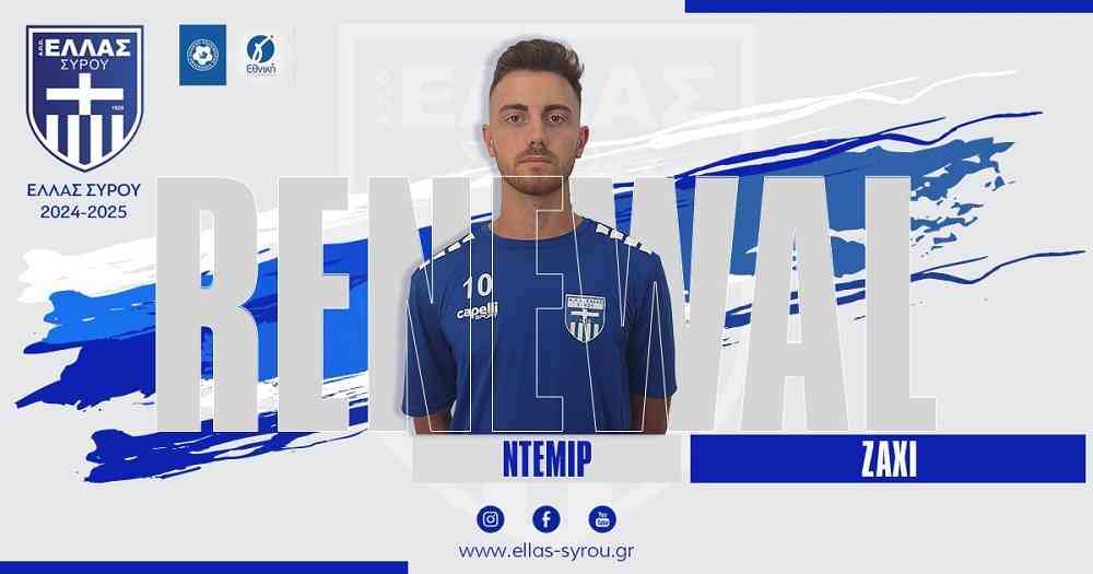 «Η διοίκηση του Α.Π.Ο Ελλάς Σύρου ανακοινώνει την ανανέωση της συνεργασίας με τον Ντεμίρ Ζάχι, για μία ακόμα χρονιά στο νησί μας.