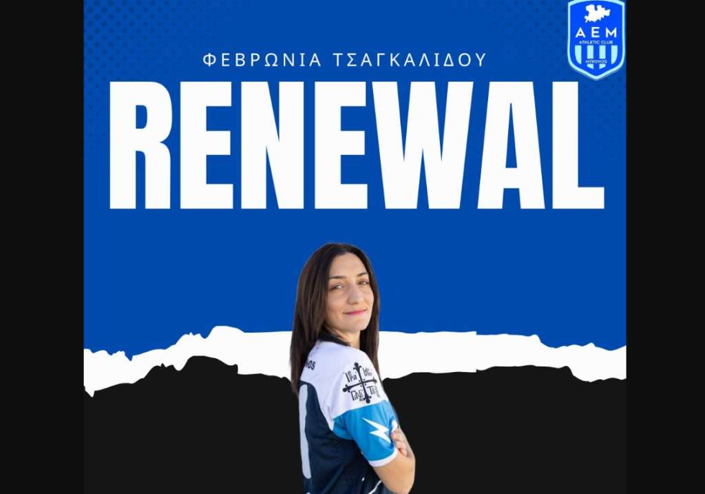 Τα χρώματα της Μυκόνου θα συνεχίσει να φορά η Φεβρωνία Τσαγκαλίδου, η οποία μετά τις απαραίτητες συζητήσεις, έδωσε τα χέρια με τη διοίκηση της ομάδας. Η αθλήτρια αγωνίζεται στον χώρο της άμυνας και συγκεκριμένα ως αριστερό μπακ. Φόρεσε τα χρώματα της Μυκόνου για πρώτη φορά τη σεζόν 2023-24 και αποφάσισε να παραμείνει κάτοικος Μυκόνου καθώς ήταν ευχαριστημένη με την έως τώρα συνεργασία της με την ομάδα.