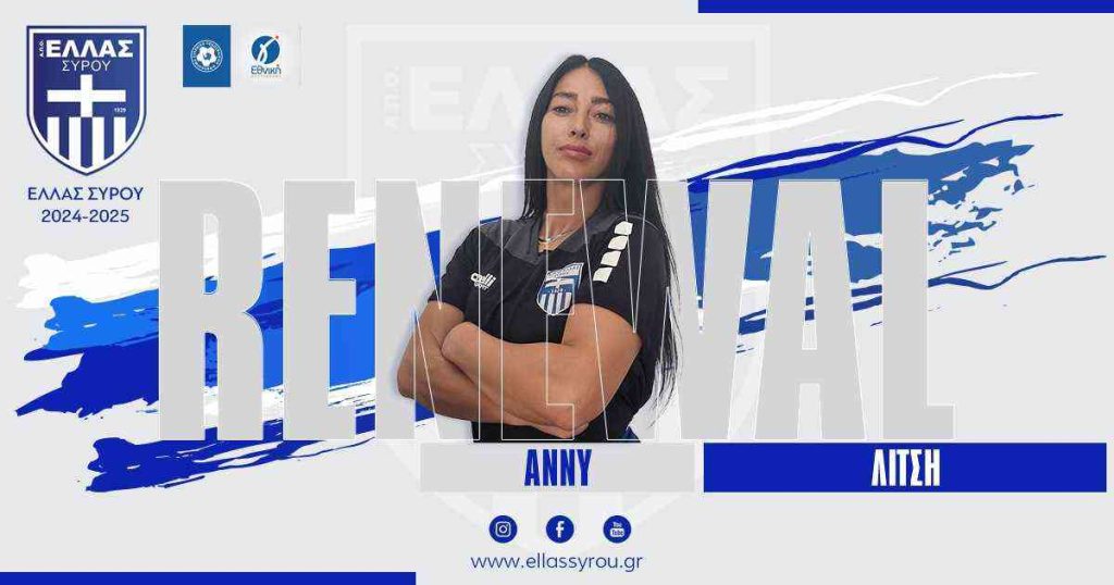 Ο ΑΠΌ ΕΛΛΑΣ Σύρου ανακοινώνει την συνέχιση της συνεργασίας με την Μασέρ/Φυσικοθεραπεύτρια της ομάδας μας Άννυ Λίτση, η οποία και την περσινή χρονιά, βρισκόταν στον προπονητικό τιμ του Παναγιώτη Χριστοφιλέα.