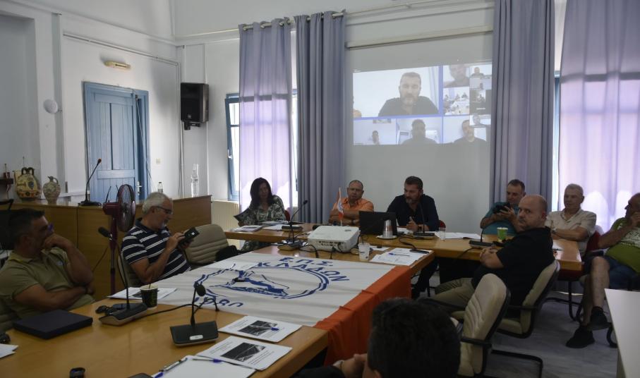 Ο πρόεδρος της ομάδας της Μήλου κ. Μιχάλης Βαμβακάρης αρχικά καλωσόρισε όλους όσους βρέθηκαν στο νησί για τη συνεδρίαση και ταυτόχρονα τους πρόσφερε κι από ένα αναμνηστικό.