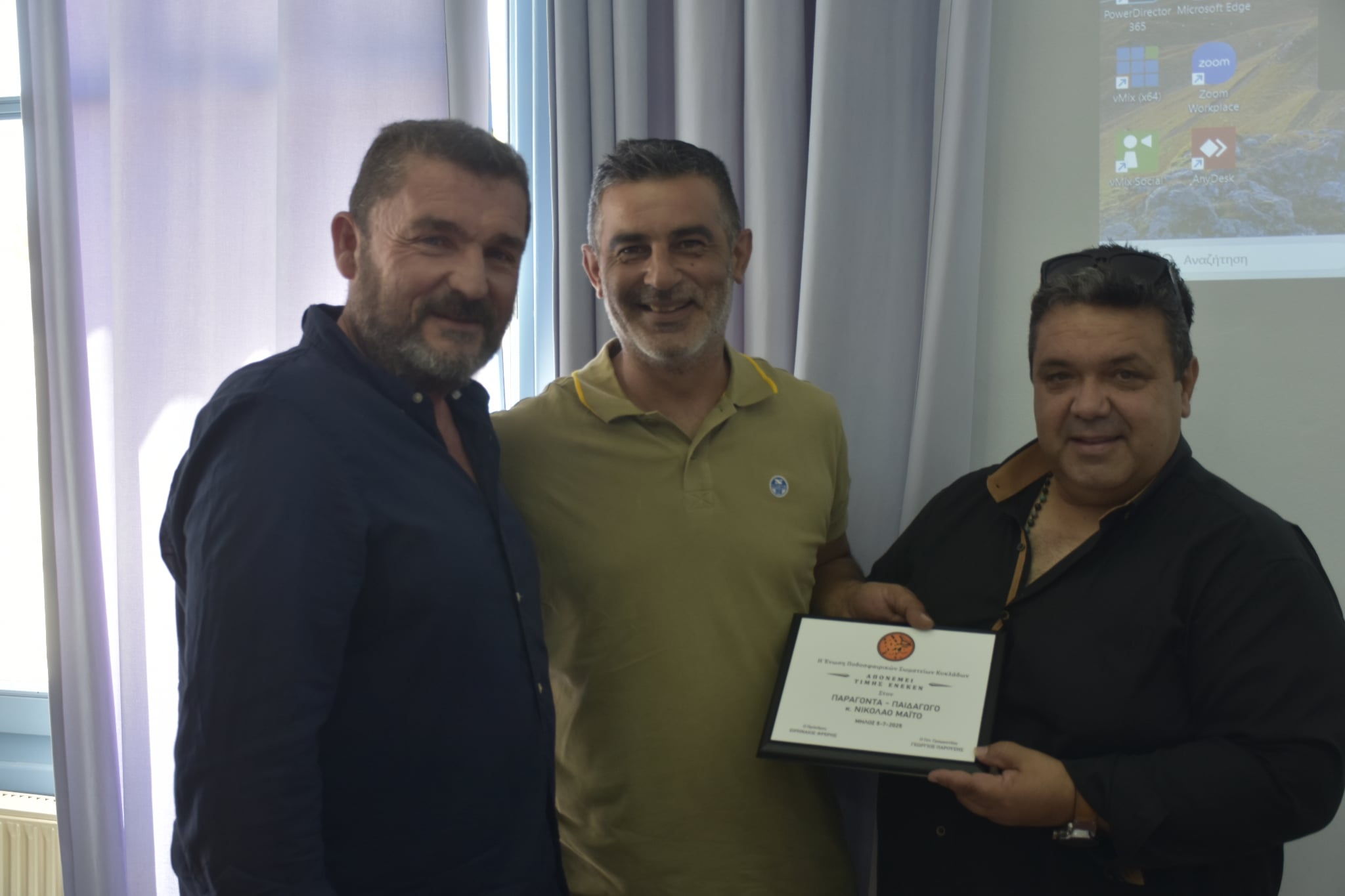 Ο Ρένος Φρέρης κατά τη διάρκεια της συνεδρίασης τίμησε τρεις ανθρώπους, οι οποίοι κατά τη διάρκεια της χρονιάς ξεχώρισαν ή έδωσαν το δικό τους στίγμα. Μάλιστα, οι βραβεύσεις έγιναν μέσα σε πολύ μεγάλη συγκίνηση, καθώς κανείς από τους παρευρισκόμενους δεν το περίμενε. Συγκεκριμένα ο κ. Φρέρης και η ΕΠΣ Κυκλάδων έδωσαν τιμητική πλακέτα στον παράγοντα – παιδαγωγό, Νικόλαο Μαϊτό, στον διαιτητή – παιδαγωγό, Γεώργιο Μαθιουδάκη, αλλά και στον προπονητή – παιδαγωγό, Χρήστο Καραγιαννόπουλο.