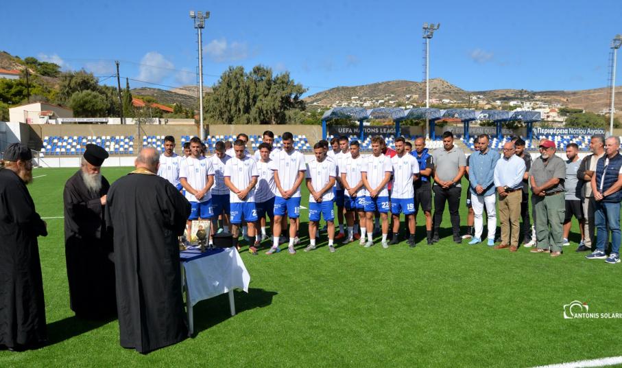 Σε κλίμα συγκίνησης και αισιοδοξίας τελέστηκε ο αγιασμός της ομάδας Α.Π.Ο. ΕΛΛΑΣ Σύρου στο γήπεδο της Ερμούπολης, παρουσία του προέδρου της ομάδας Γιώργου Λεονταρίτη, μελών της διοικούσας επιτροπής, των παικτών και του προπονητικού τιμ.