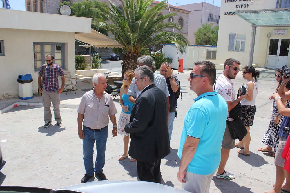 Συνοδευόμενος από στελέχη του κόμματος αλλά και μέλη της Κομματικής Οργάνωσης στη Σύρο, ανάμεσα στους οποίους, ο περιφερειακός σύμβουλος της Λαϊκής Συσπείρωσης Ν. Αιγαίου, Βαγγέλης Σιγάλας και ο επικεφαλής της Λαϊκής Συσπείρωσης του Δήμου Σύρου - Ερμούπολης, Νικόλας Καϊλης ο Δημήτρης Κουτσούμπας είχε την ευκαιρία να ενημερωθεί για τα ζητήματα υποστελέχωσης της Υγειονομικής Μονάδας, για θέματα οικονομικής φύσεως και εργασιακά θέματα των υπαλλήλων του Νοσοκομείου, καθώς επίσης και για τα προβλήματα σε επίπεδο διακομιδών και αποχώρησης (συνταξιοδότησης) προσωπικού.