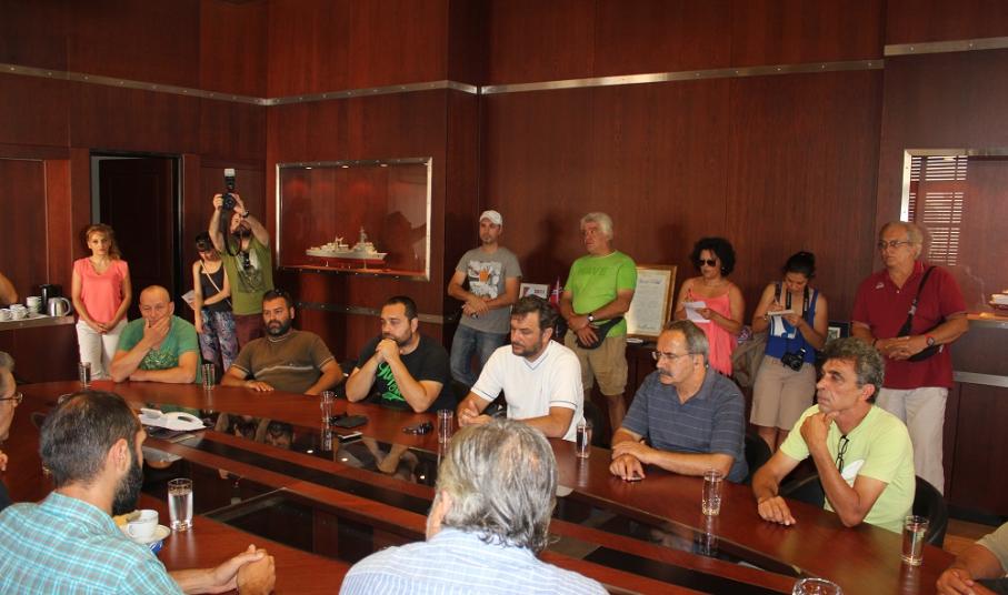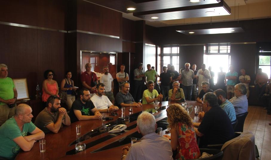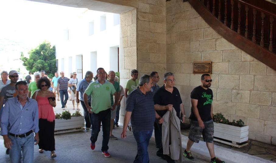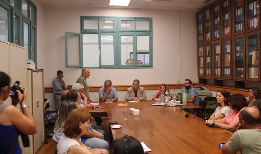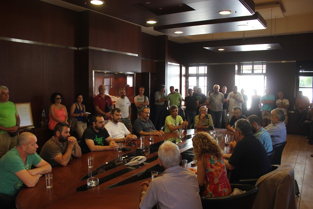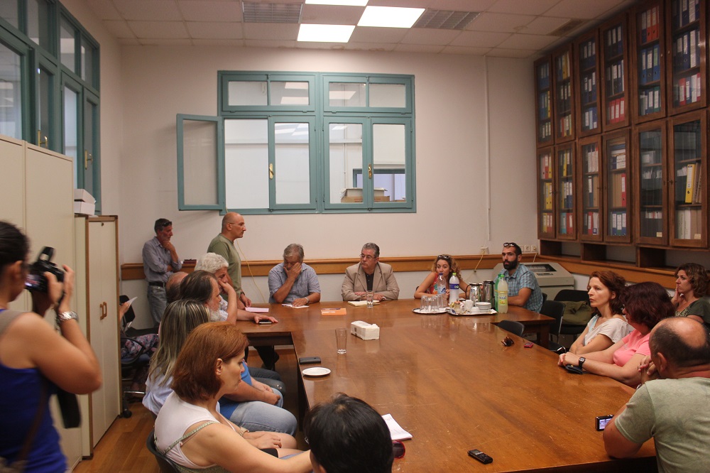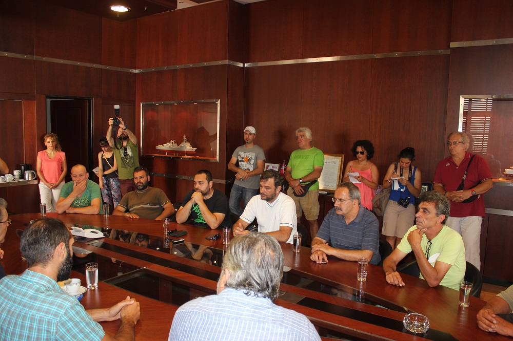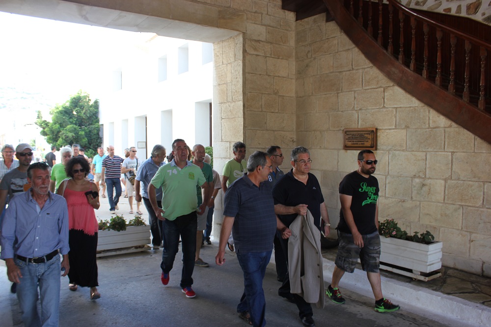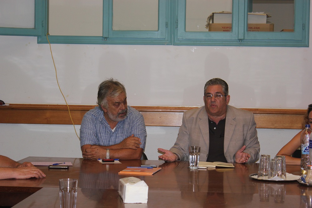 Μία ώρα αργότερα, ο ίδιος επισκέφθηκε τα γραφεία της Αποκεντρωμένης Διοίκησης Αιγαίου όπου είχε την ευκαιρία να συνομιλήσει με τους υπαλλήλους, με τον πρόεδρο του Συλλόγου τους να εκθέτει αναλυτικά τα ζητήματα που τους απασχολούν. Κινητικότητα, μετατάξεις, περικοπές κ.α. αποτέλεσαν βασικά θέματα της συζήτησης, για τα οποία τοποθετήθηκε ο κ. Κουτσούμπας μιλώντας ταυτόχρονα και για την πρόταση εξουσίας που έχει το Κομμουνιστικό Κόμμα.