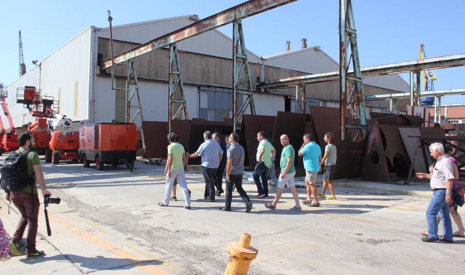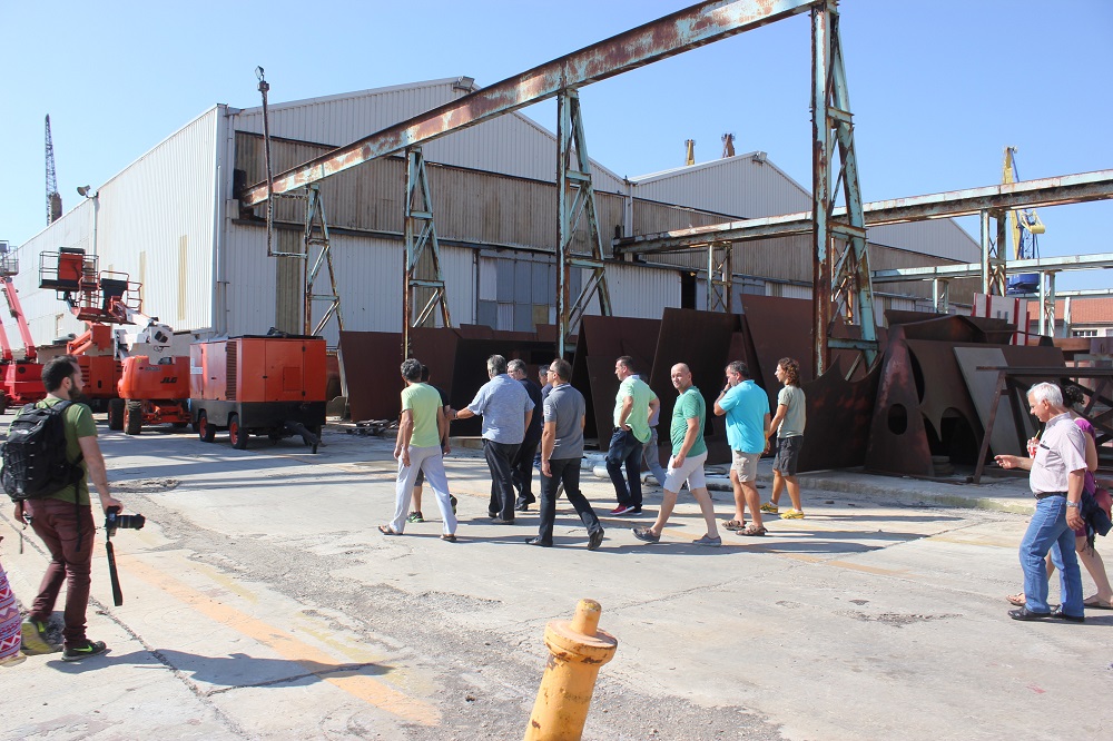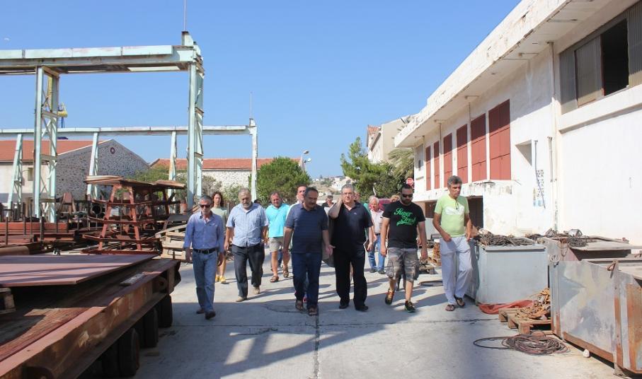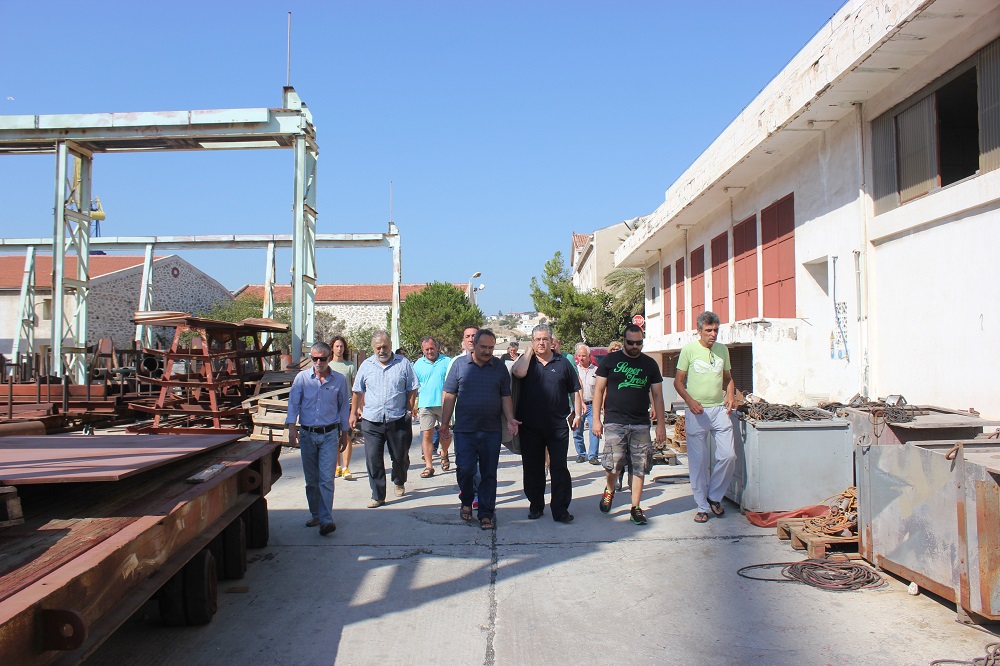 Στη συνέχεια, οι εργαζόμενοι του Νεωρίου ξενάγησαν τον Γ.Γ. του ΚΚΕ στις εγκαταστάσεις του ναυπηγείου.