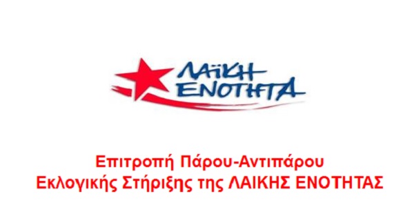 Ο πρώτος στη λίστα του ψηφοδελτίου των Κυκλάδων, μαζί με μέλη της Επιτροπής Στήριξης της ΛΑΙΚΗΣ ΕΝΟΤΗΤΑΣ Πάρου- Αντιπάρου θα περιοδεύσει: