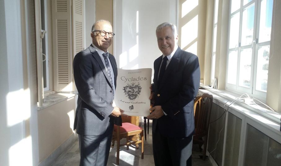 Κατά τη διάρκεια της συνάντησης πραγματοποιήθηκε εκ μέρους της Δημοτικής Αρχής ενημέρωση του κ. Πρέσβη σε θέματα που σχετίζονται με τη στρατηγική ανάπτυξης του δήμου Σύρου – Ερμούπολης σε τομείς, όπως ο πολιτισμός, ο τουρισμός και οι επενδύσεις.