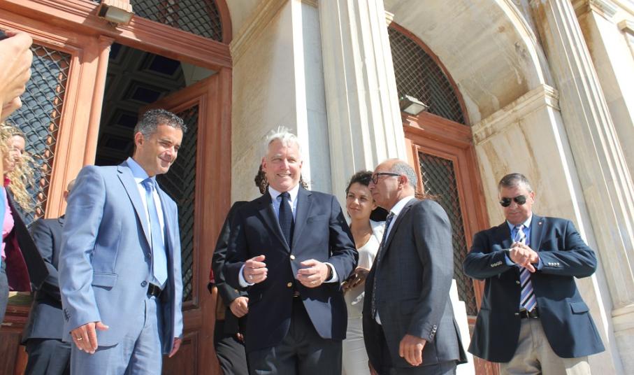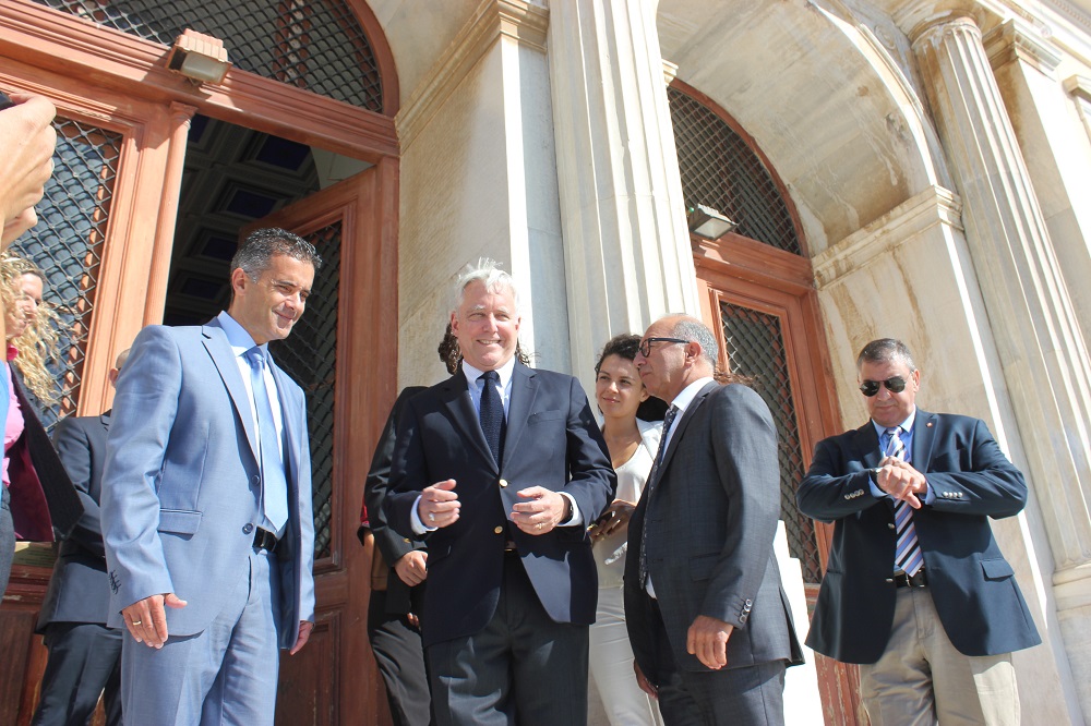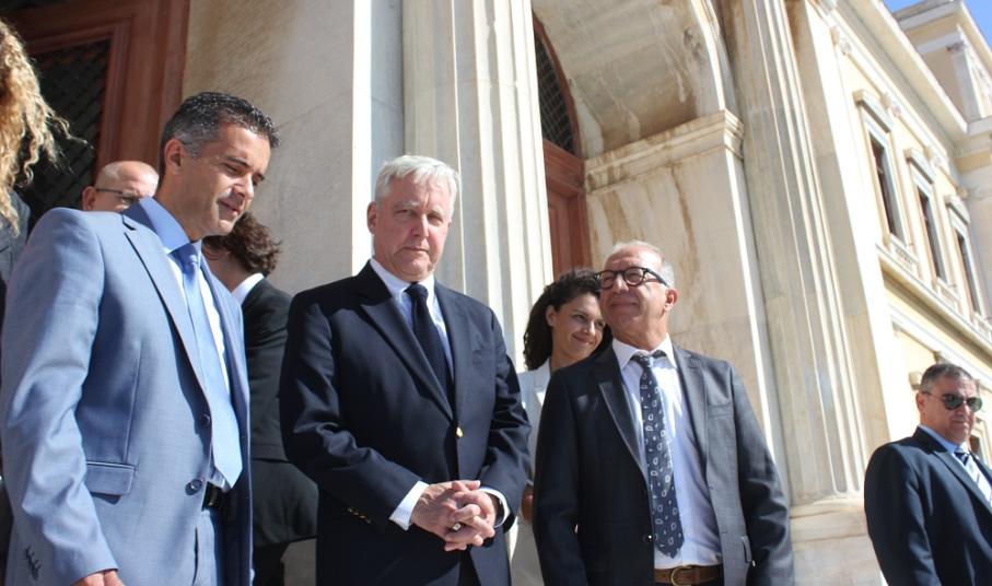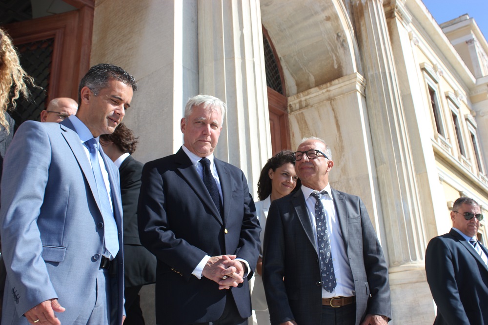 Την πρωτεύουσα των Κυκλάδων επισκέφθηκε ο Αμερικανός Πρέσβης Ντέιβιντ Πίρς σήμερα το πρωί, οπότε και πραγματοποίησε διαδοχικές συναντήσεις στην Περιφέρεια Νοτίου Αιγαίου και τον Δήμο Σύρου – Ερμούπολης